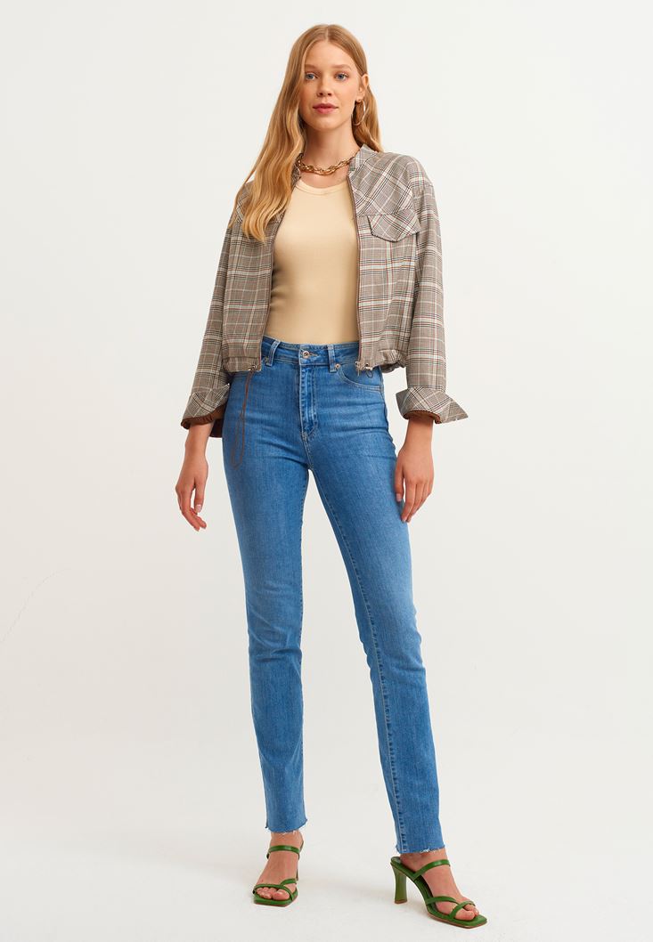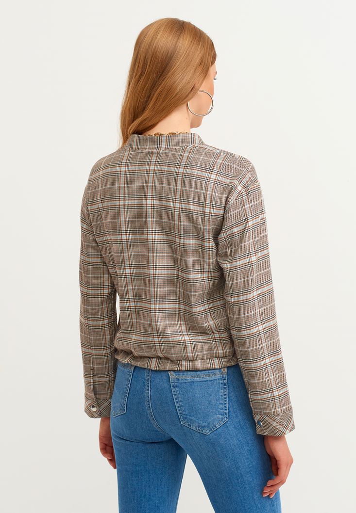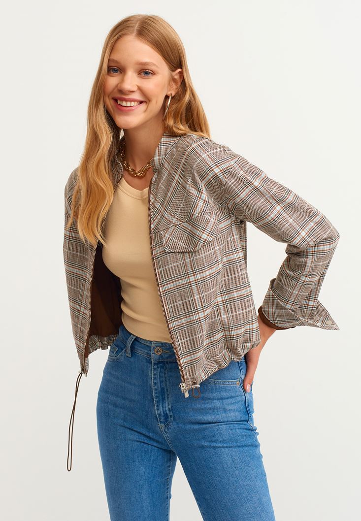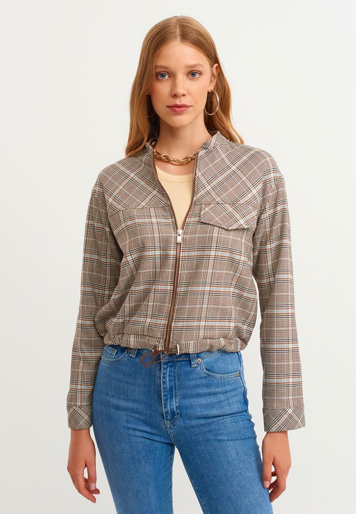 • Bayan Çok Renkli Ekose Desenli Bomber Ceket