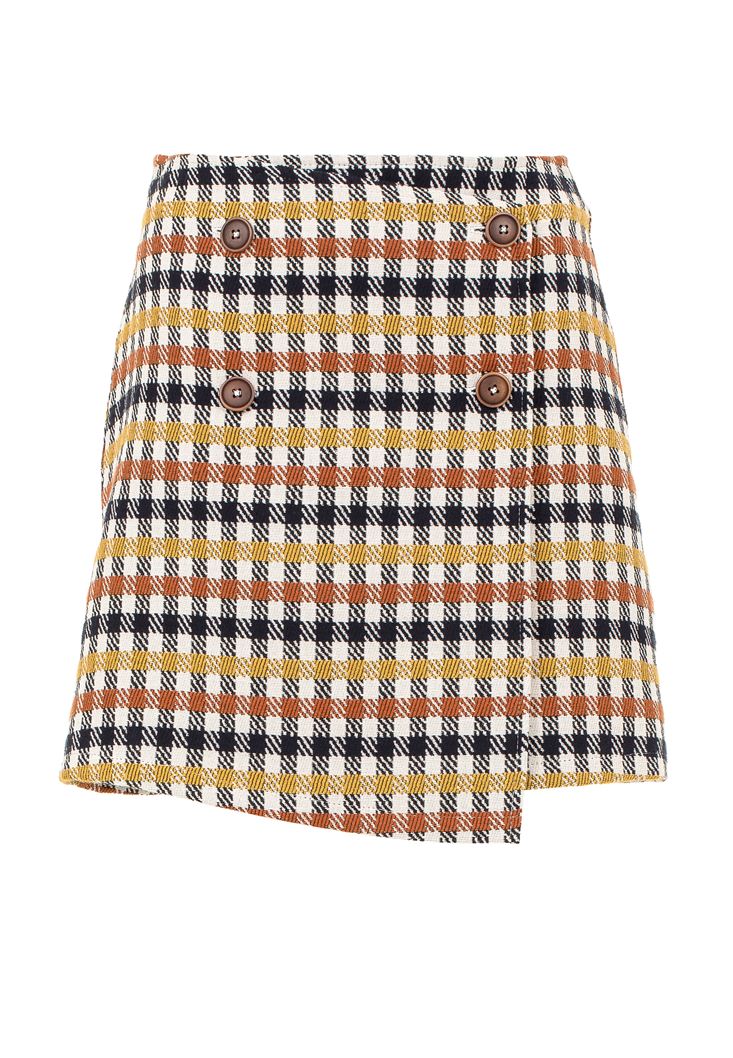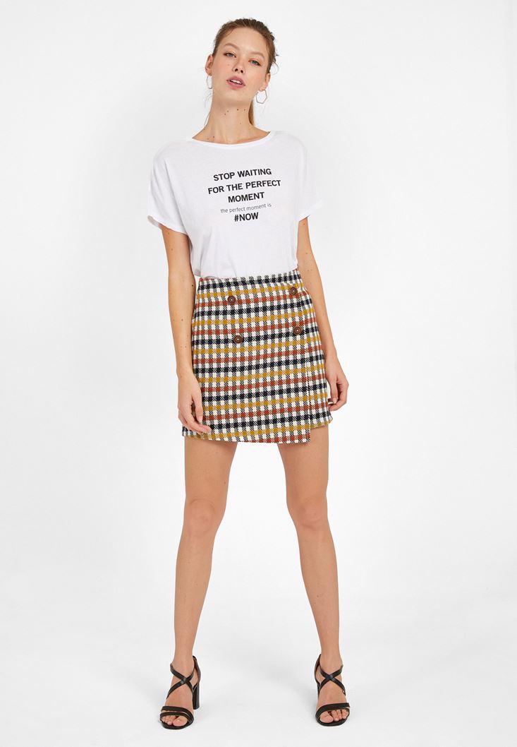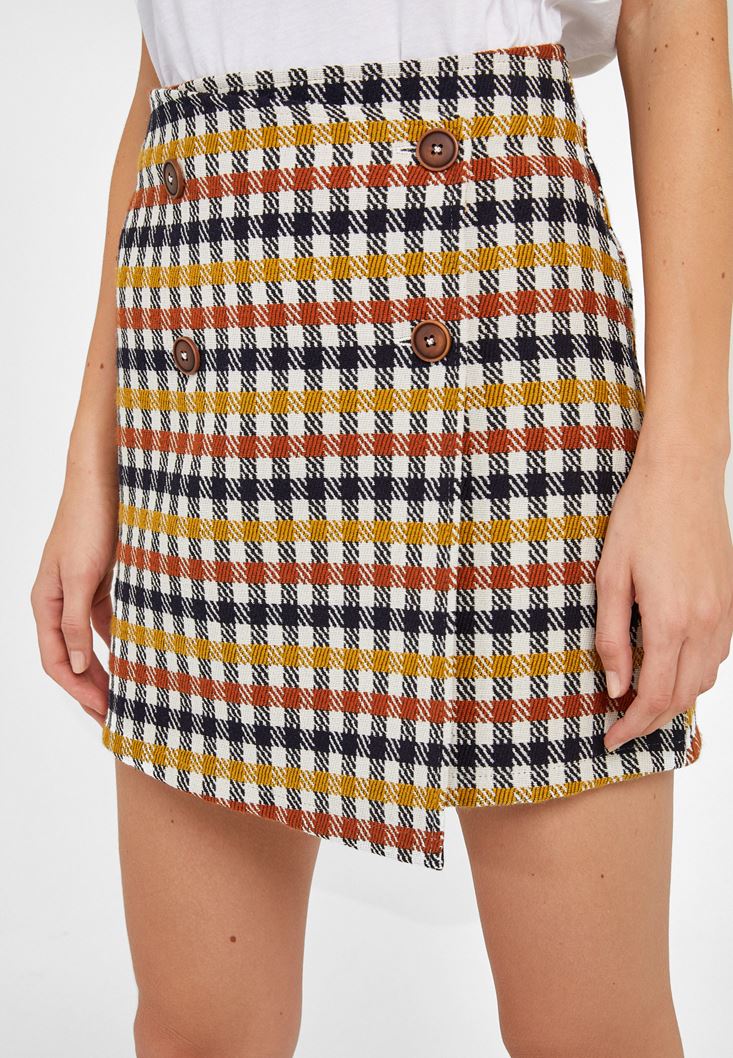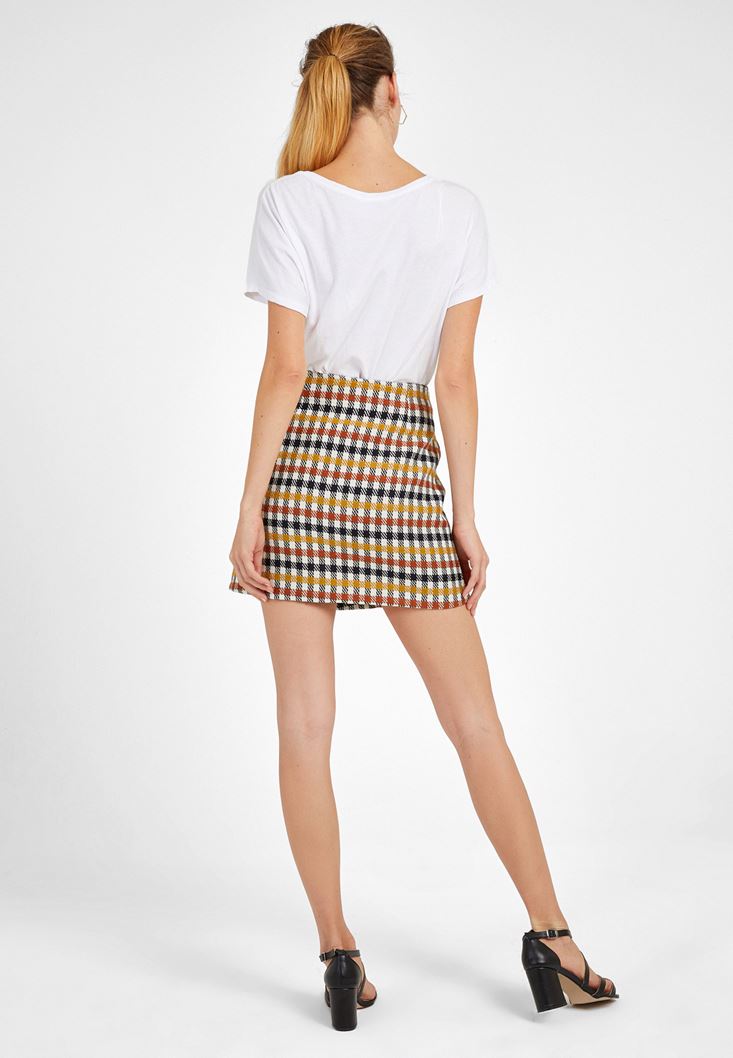 Çok Renkli Ekose Desenli Mini Etek