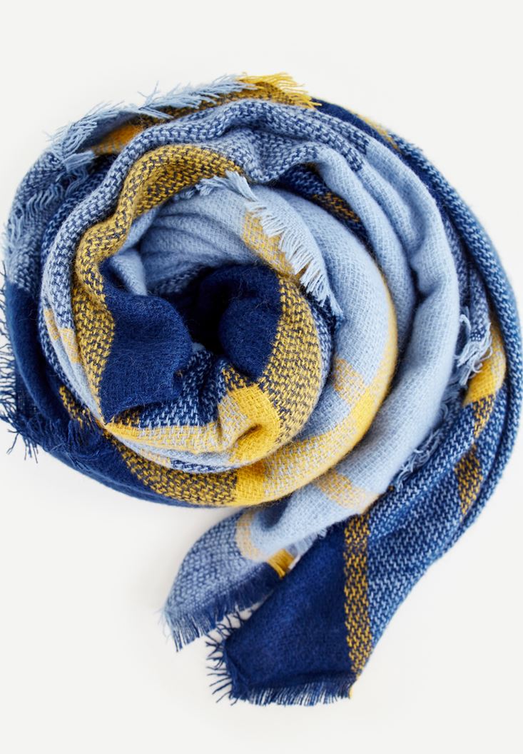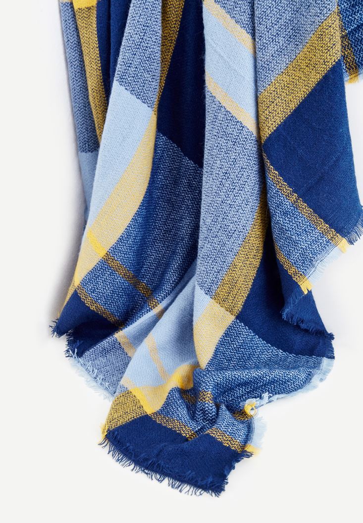 • Bayan Lacivert Ekose Desenli Uzun Şal