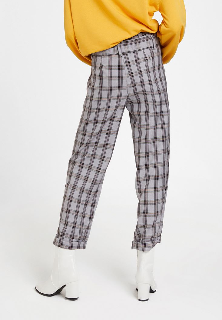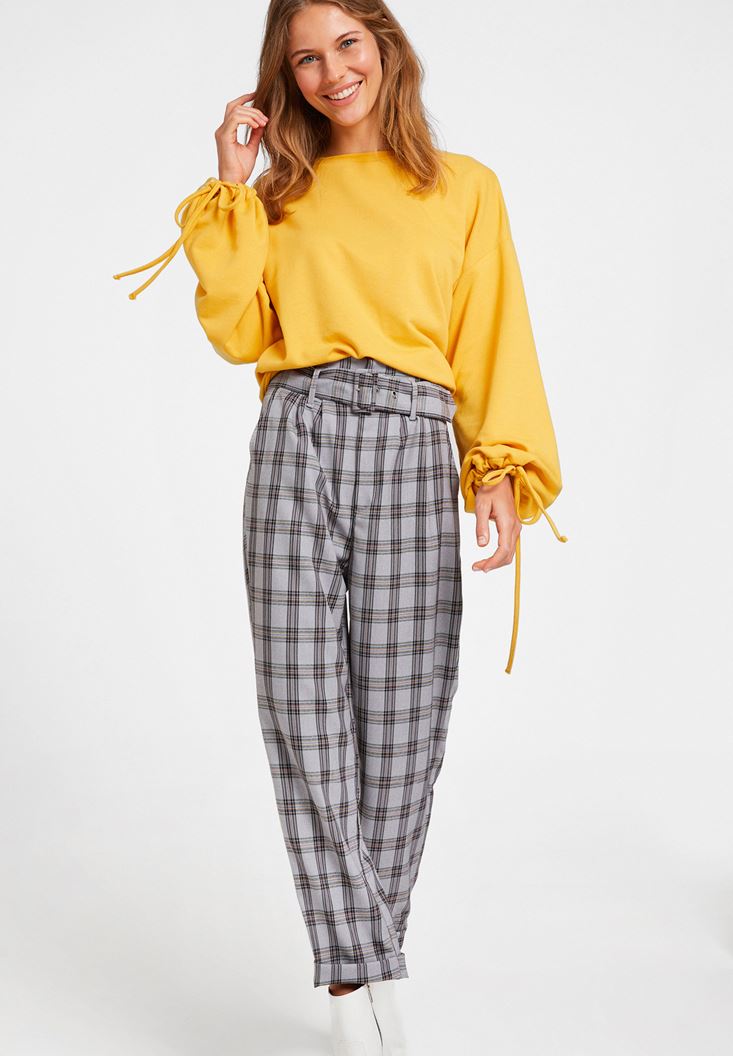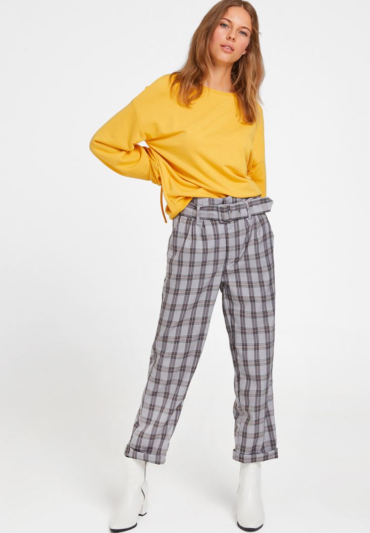 Ekose Pantolon modeli salaş tasarımı, dikkat çeken detayları ve yumuşak dokusu ile kombinlerinde sıra dışı bir dokunuş isteyenlerin beğenisini kazanacak pantolon modelleri arasında yer alıyor. Yüksek bel kesimi ve bel kesimini destekleyen kemer detayı ile dikkat çeken pantolon modelinde kullanılan ön pililer tasarımın duruşunu güçlendiriyor. Pantolon modeli boru paça kesimi ile modern ve konforlu bir görünüme sahip olurken, tasarımın dokusunda yer alan viskon lifi de konforlu görünümü konforlu bir kullanım deneyimine dönüştürüyor. Viskon lifinin yumuşaklığı ve nefes alan yapısı ile yüksek hareket özgürlüğü sunan pantolon modeli günlük ve spor kombinlerin vazgeçilmez tamamlayıcıları arasında yer alırken iddialı sokak modası kombinlerinde de tercih edilebilecek özel bir parça olarak dikkatinizi çekecek.