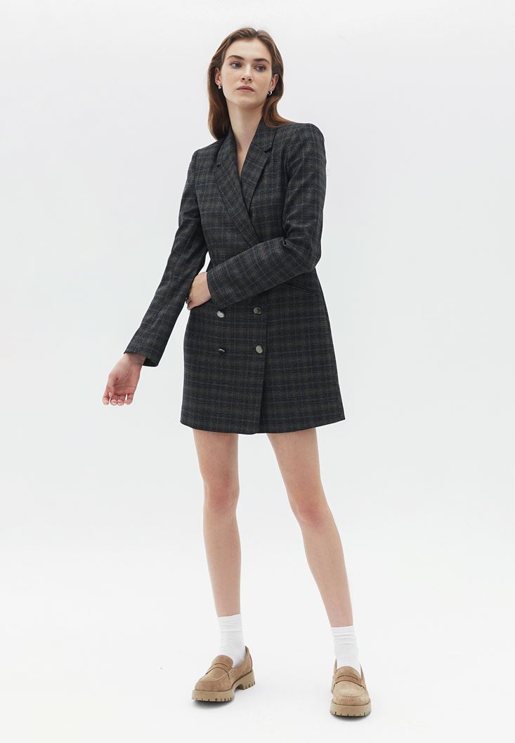 Ekoseli Ceket Elbise ve Ayakkabı Kombini