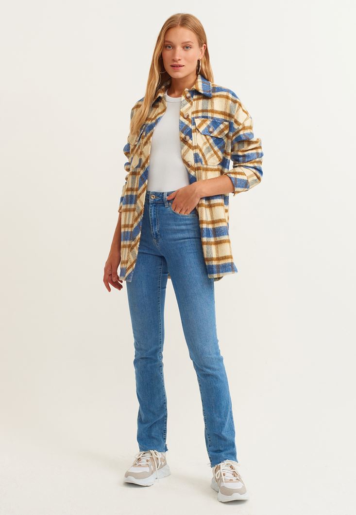 Ekoseli Gömlek Ceket ve Denim Pantolon Kombini