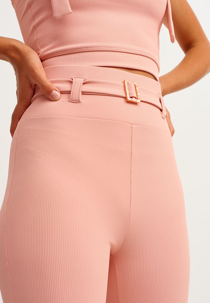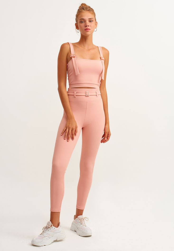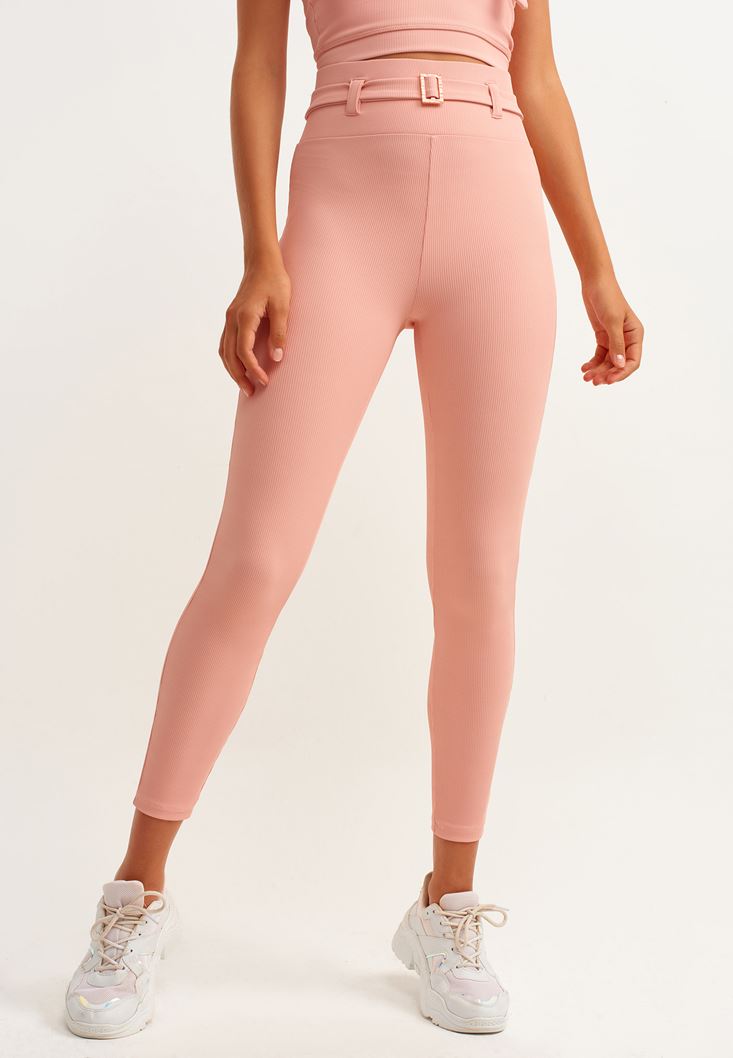 Pembe Ekstra Esnek Dokulu Kemerli Tayt