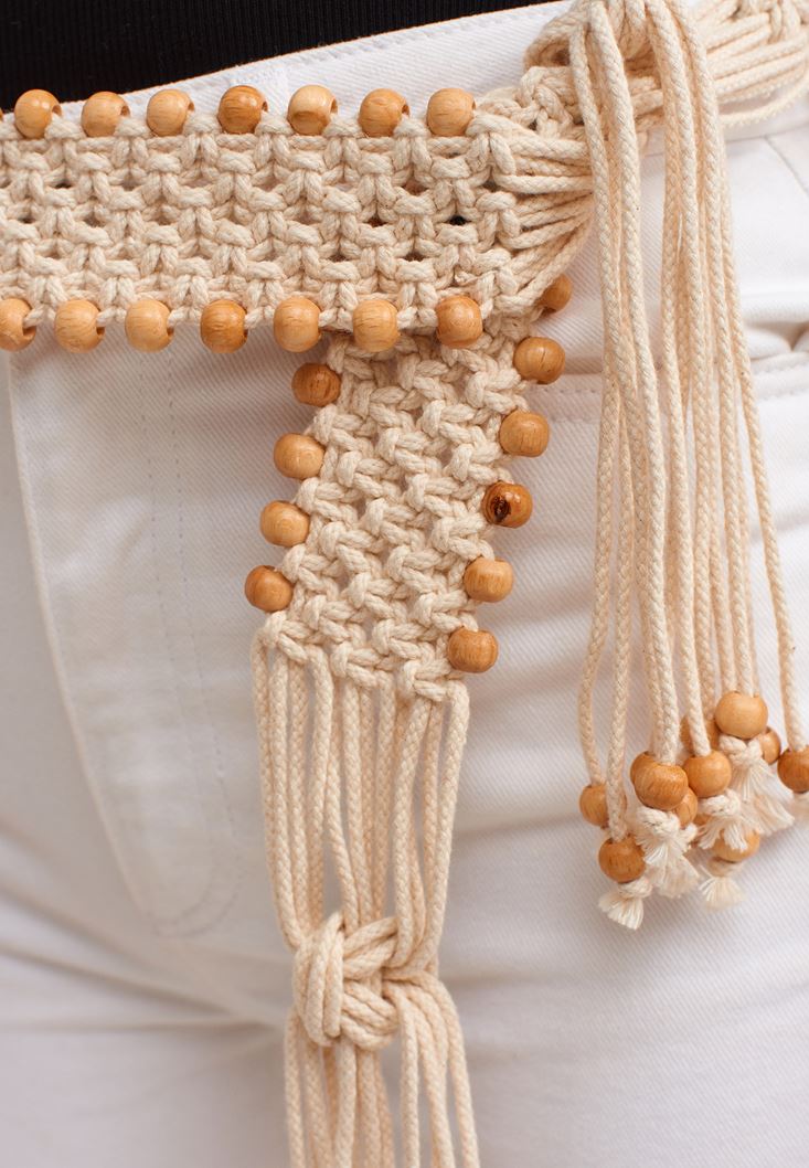 • Bayan Bej El Yapımı Örgü Makrome Kemer