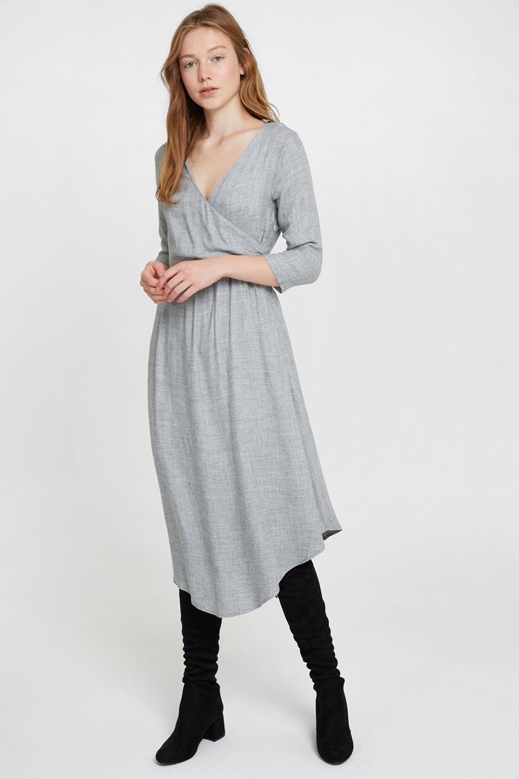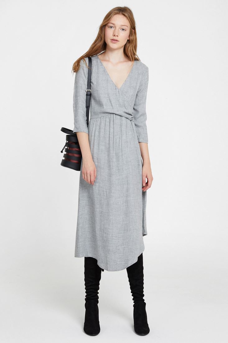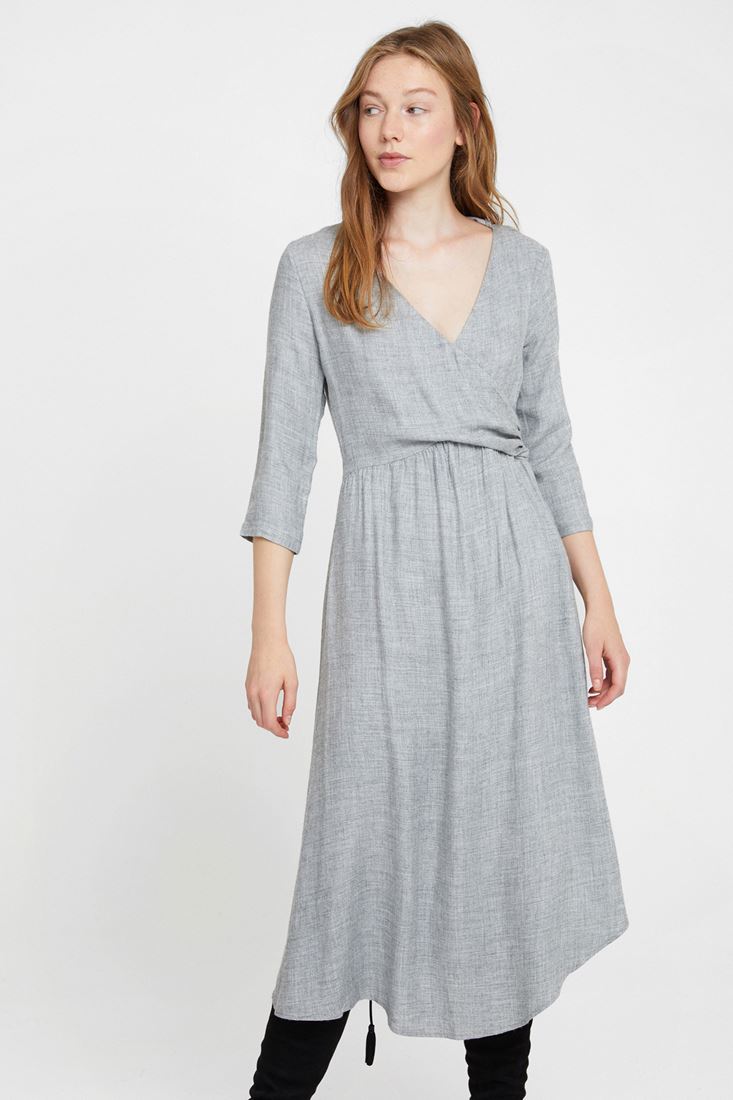 Önü Kruvaze Uzun Elbise
