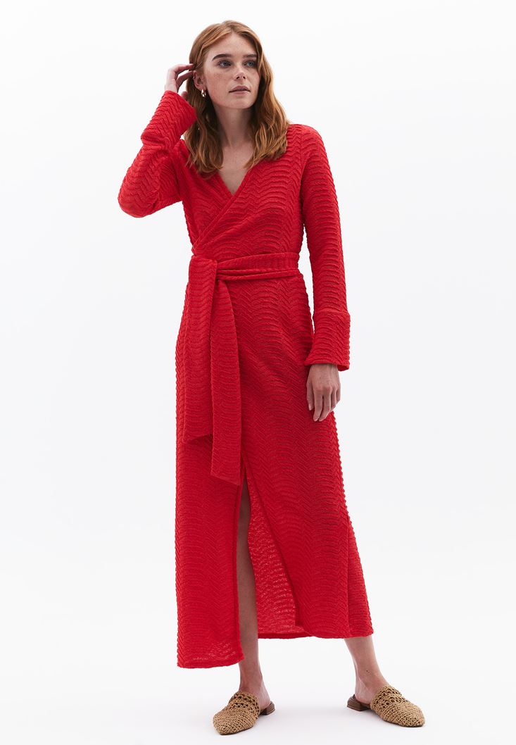 Belden Bağlamalı Uzun Elbise