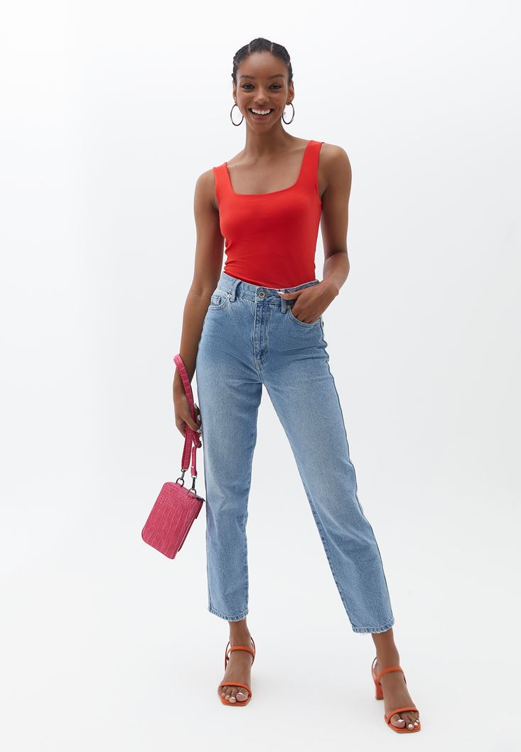 Esnek Atlet ve Pamuklu Denim Pantolon Kombini