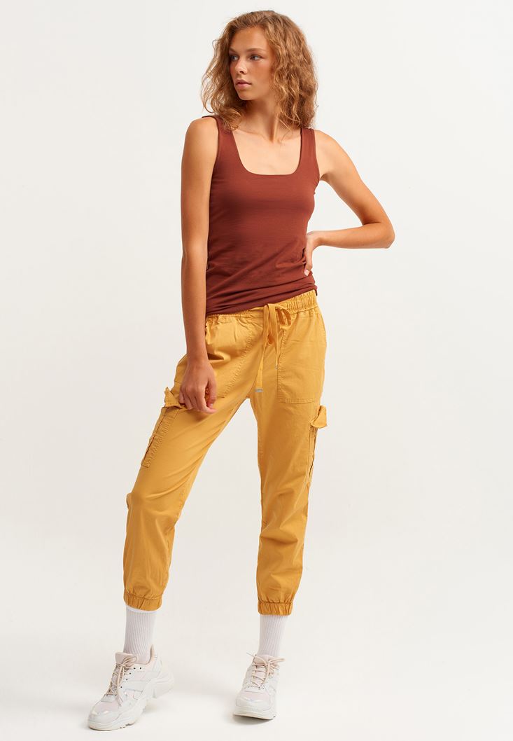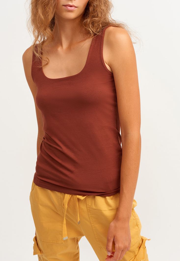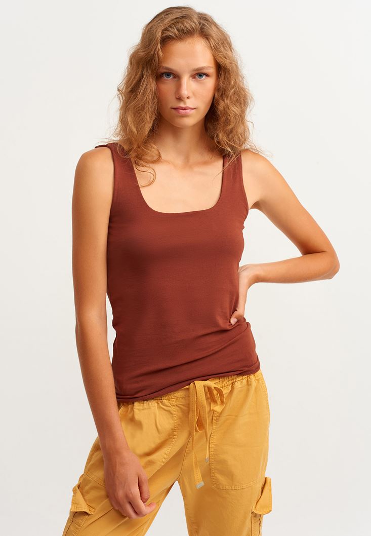 Kahverengi Esnek Dokulu Kare Yaka Atlet