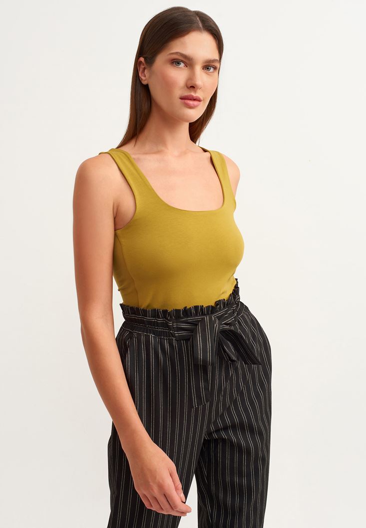 • Bayan Yeşil Esnek Dokulu Kare Yaka Atlet