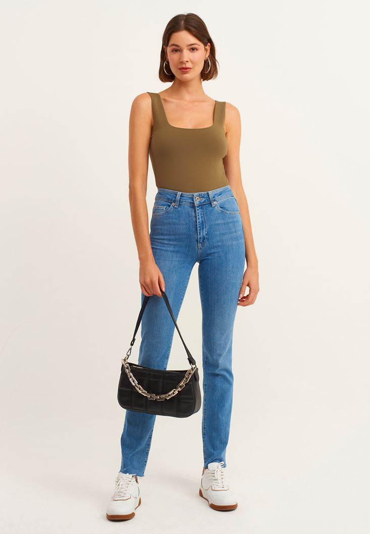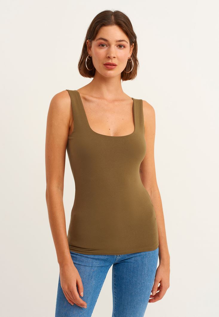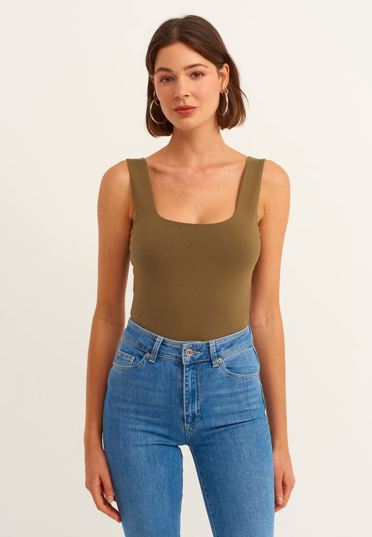 Yeşil Esnek Dokulu Kare Yaka Atlet