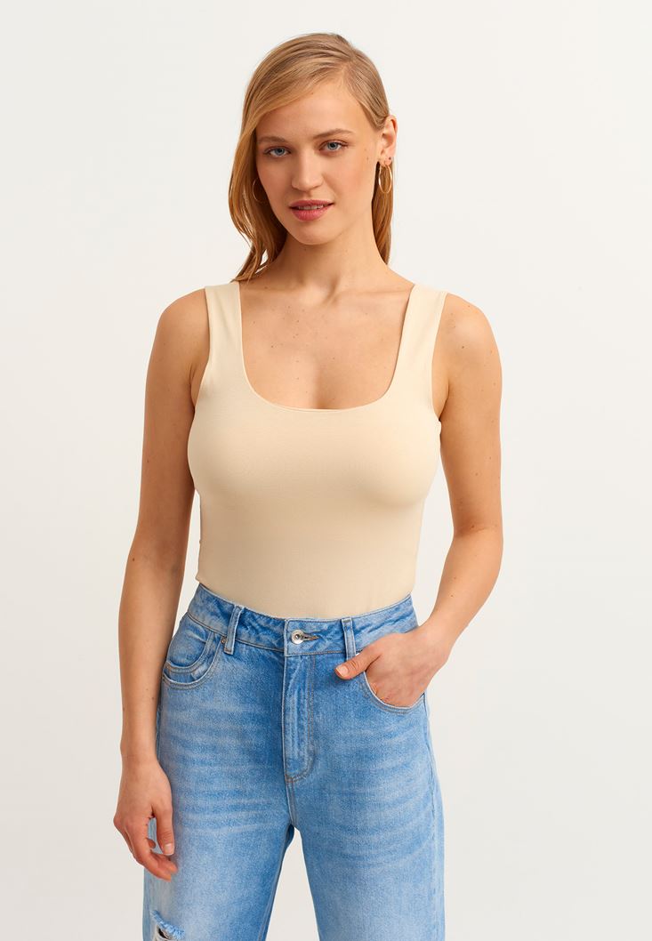 Fit: Bodycon / Yaka: Square Neck / Kol: Sleeveless