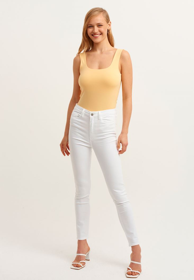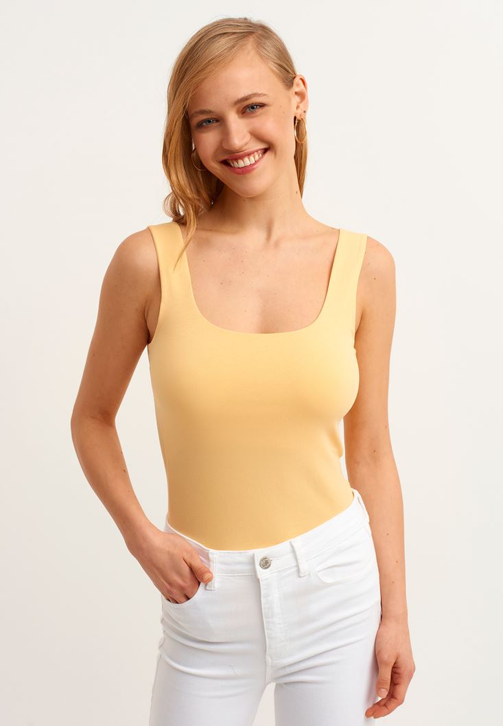 • Bayan Sarı Esnek Dokulu Kare Yaka Atlet