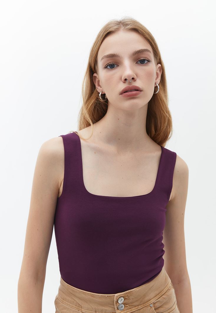 Fit: Bodycon / Yaka: Square Neck / Kol: Sleeveless