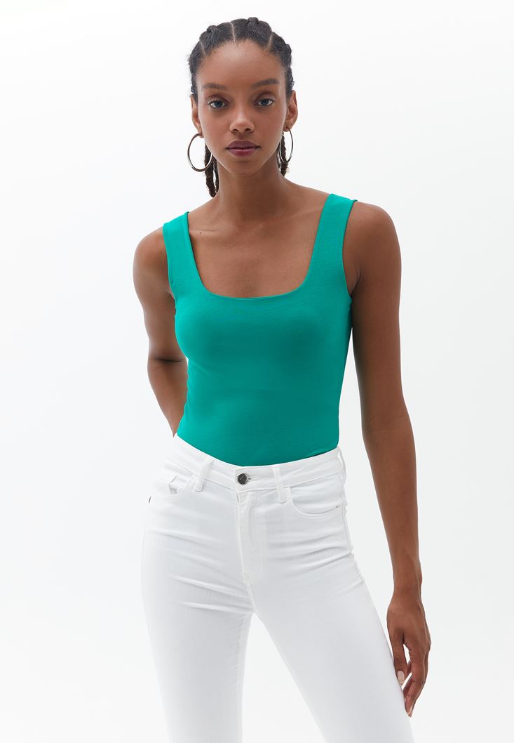 • Bayan Yeşil Esnek Dokulu Kare Yaka Atlet