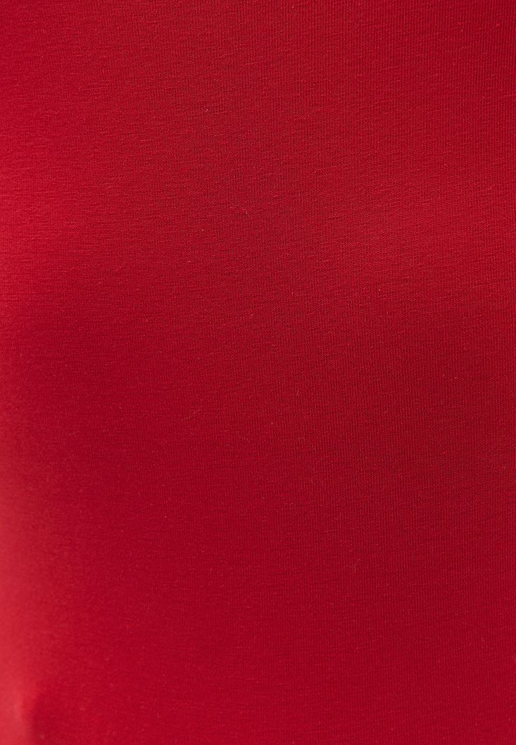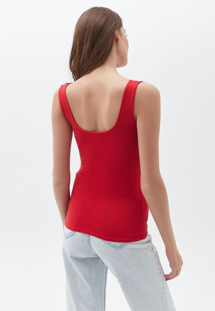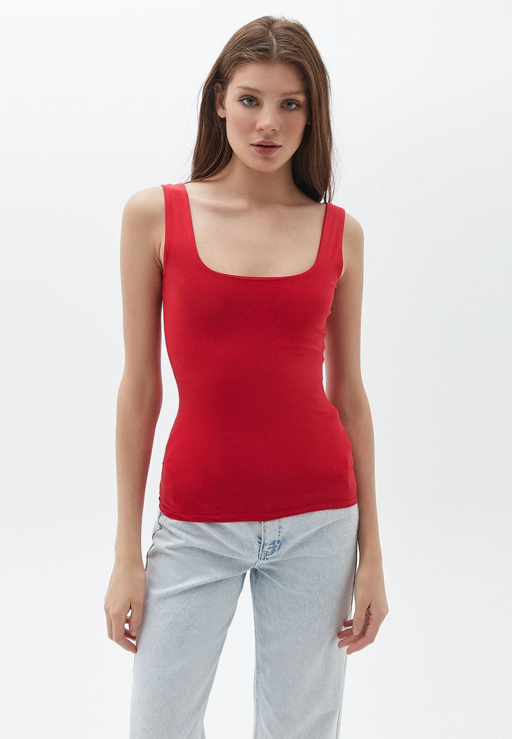 Kırmızı Esnek Dokulu Kare Yaka Atlet