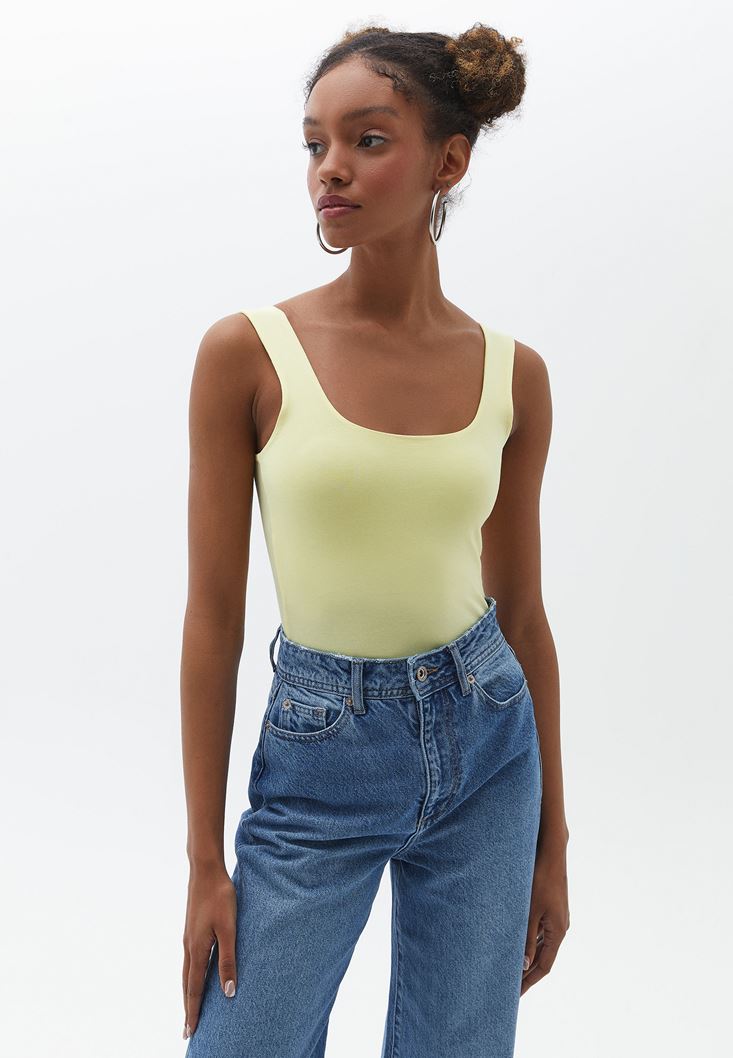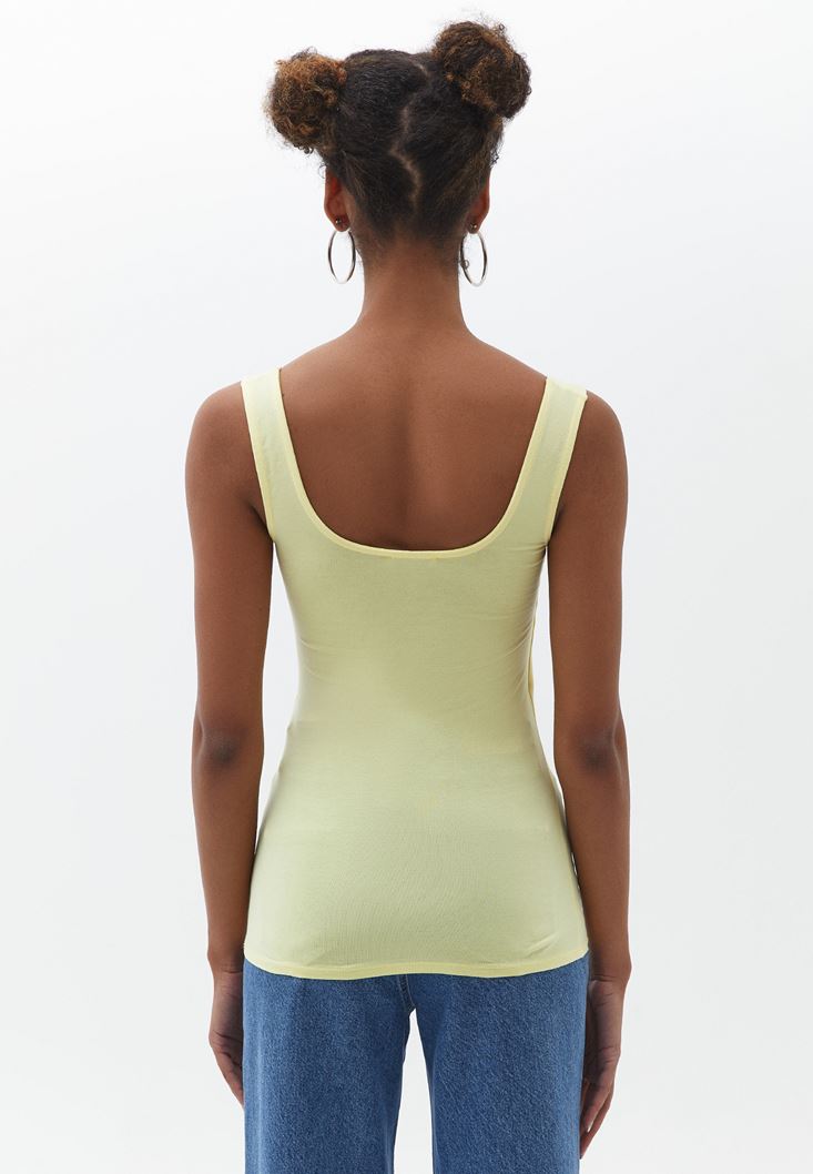 Sarı Esnek Dokulu Kare Yaka Atlet