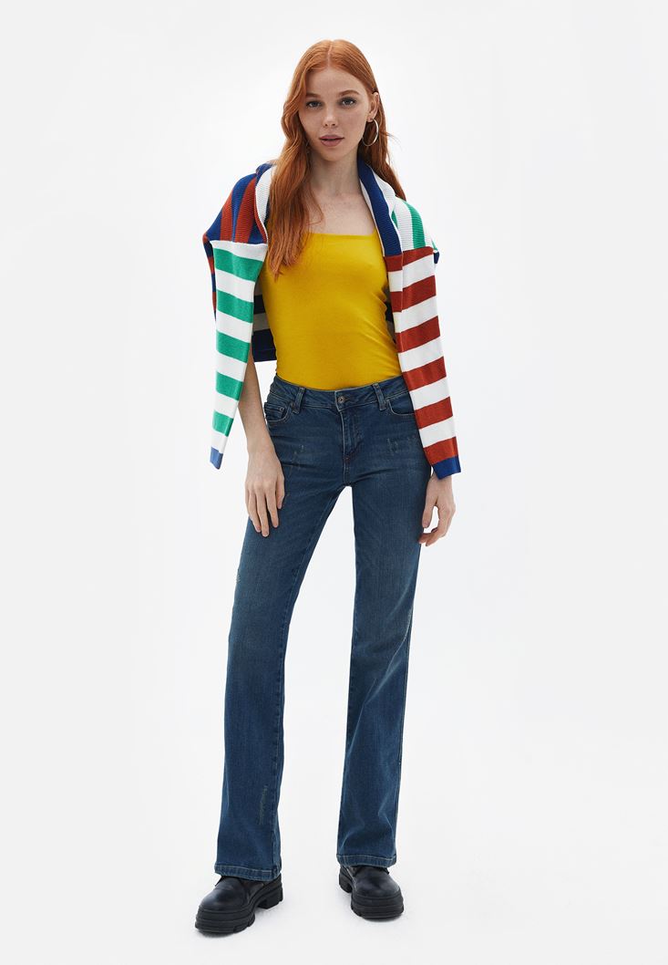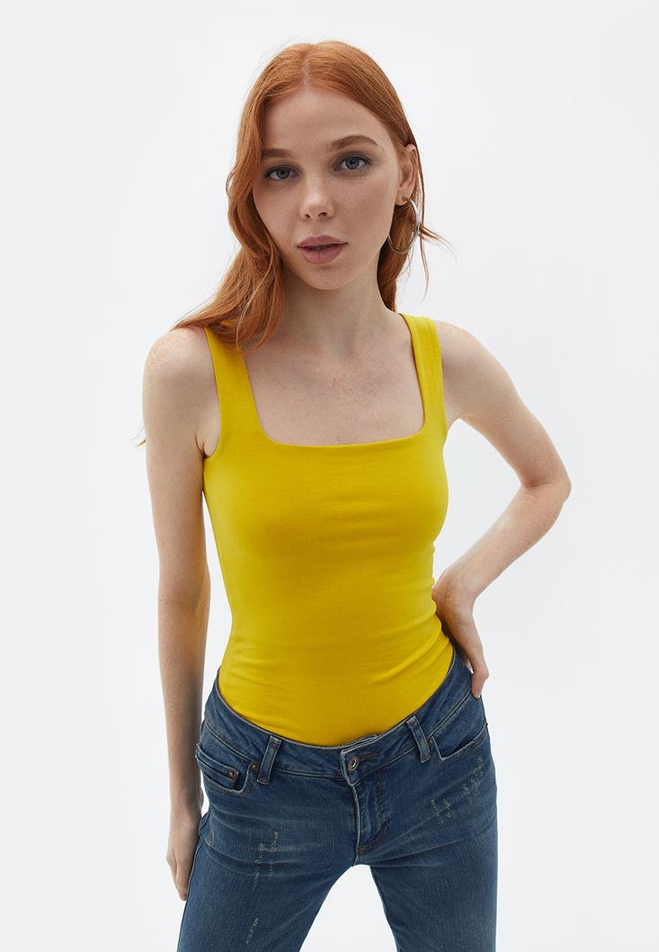 • Bayan Sarı Esnek Dokulu Kare Yaka Atlet