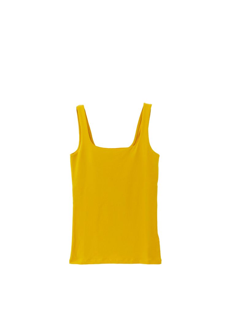 Sarı Esnek Dokulu Kare Yaka Atlet