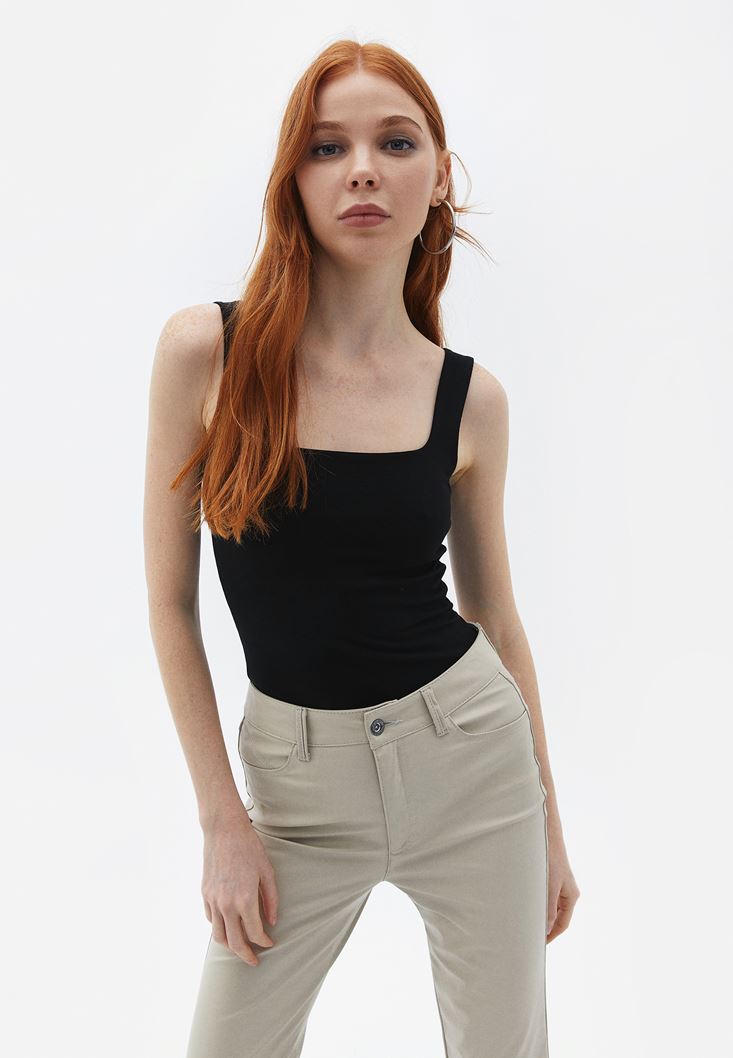 Fit: Bodycon  / Yaka: Square Neck / Kol: Sleeveless