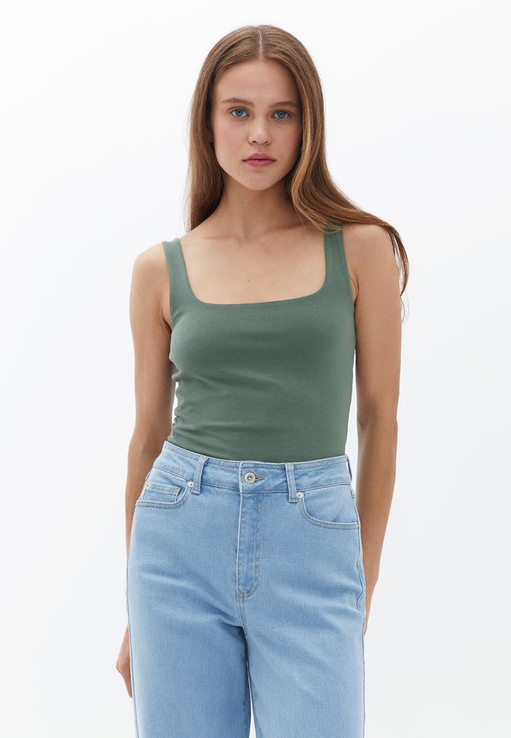 • Bayan Yeşil Esnek Dokulu Kare Yaka Atlet