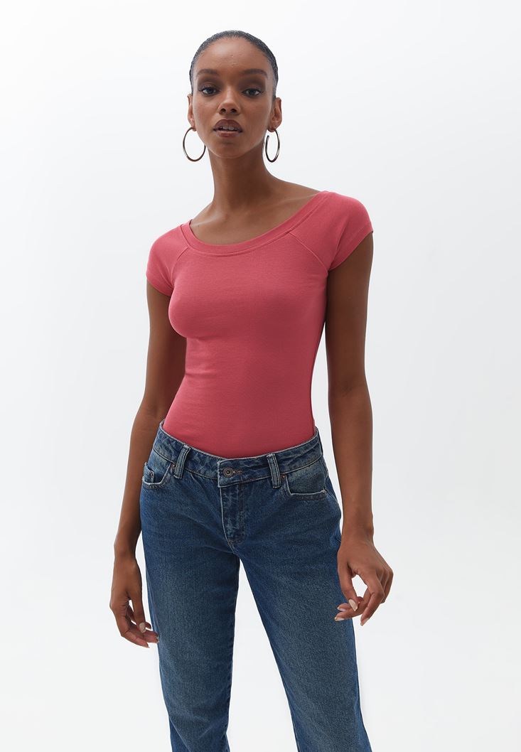 Esnek Tişört ve Yüksek Bel Pantolon Kombini