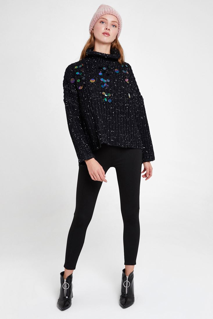 • Bayan Siyah Fermuar Cep Detaylı Tayt