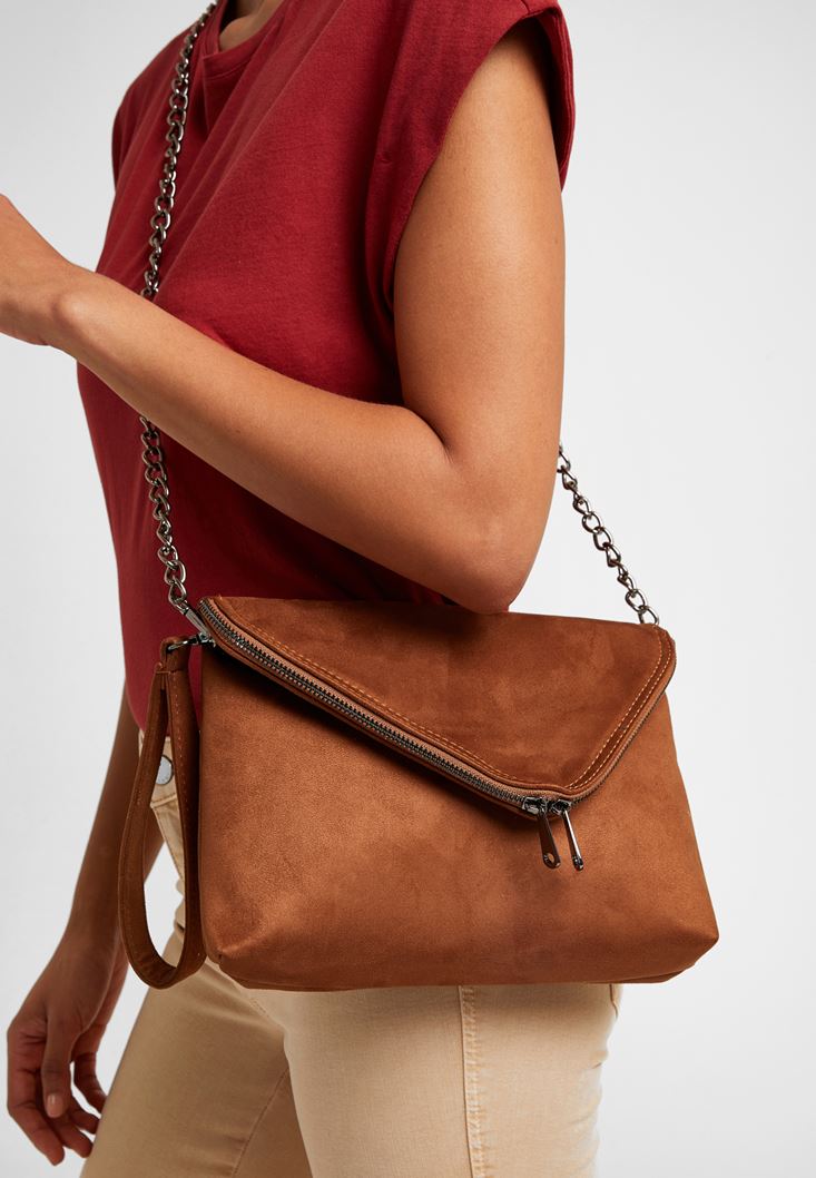 Kahverengi Fermuar Detaylı Askılı Çanta