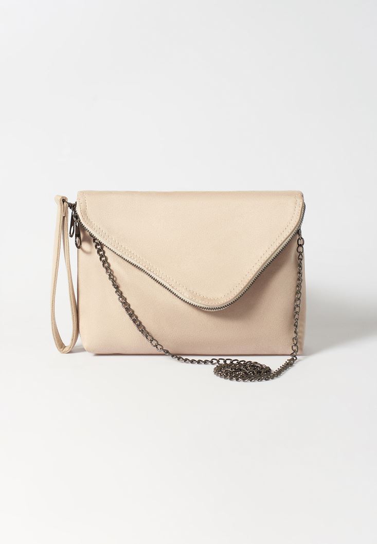 • Bayan Bej Fermuar Detaylı Askılı Çanta