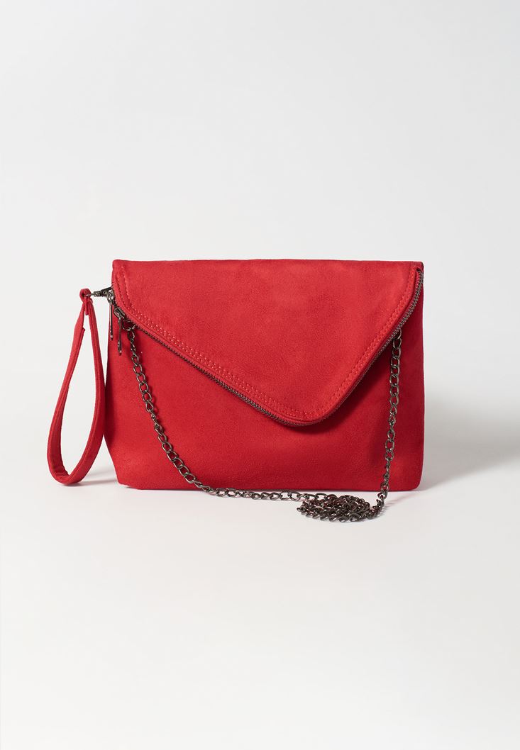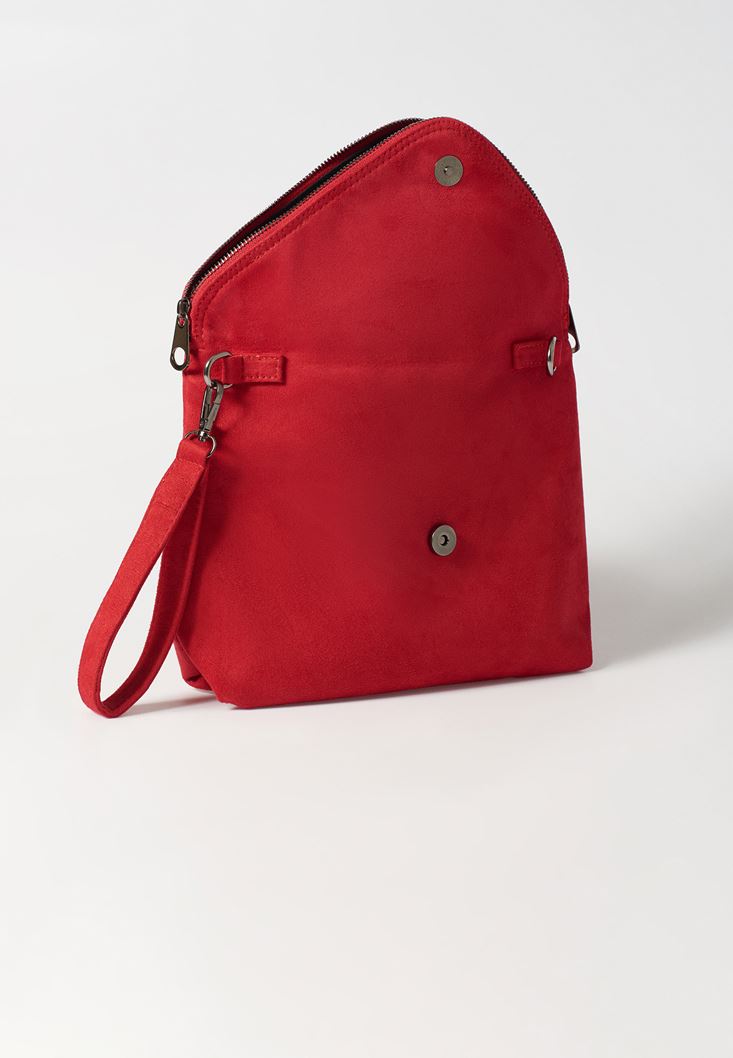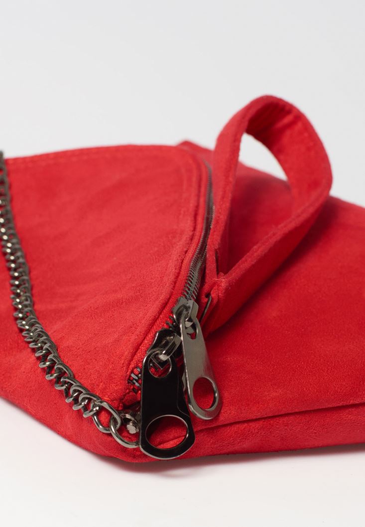 Kırmızı Fermuar Detaylı Askılı Çanta