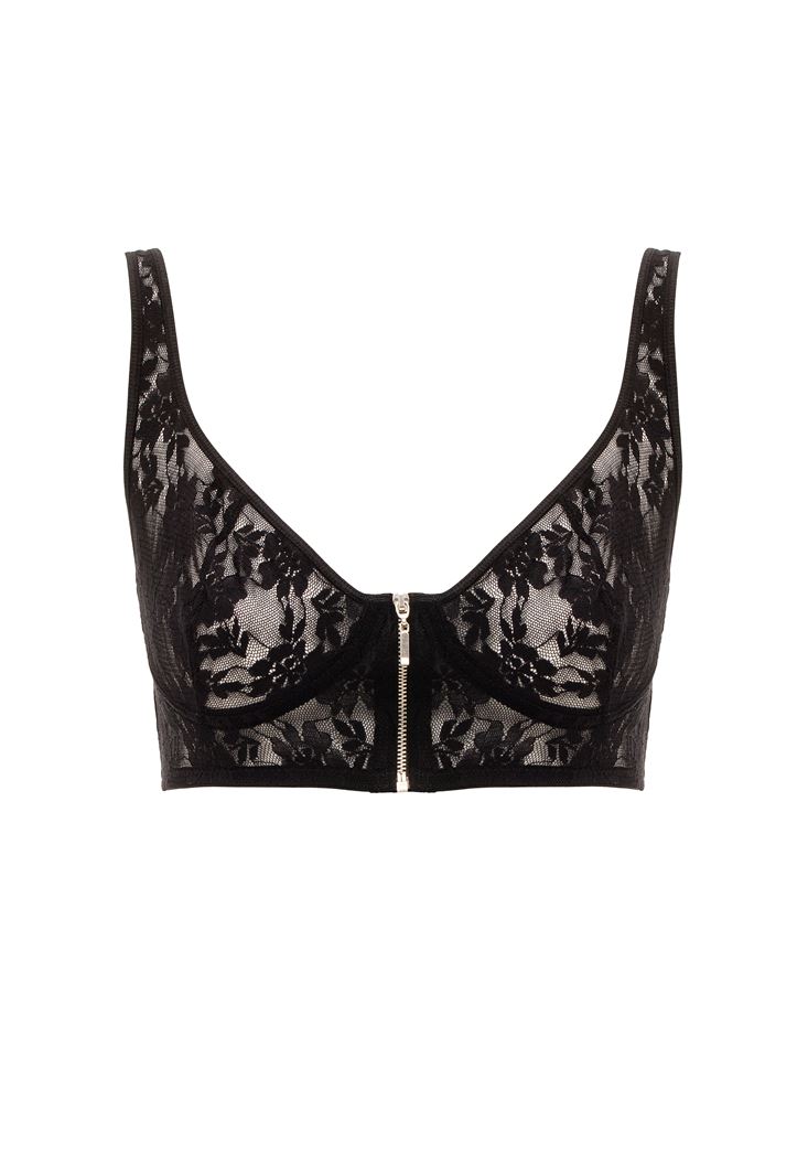 Siyah Fermuar Detaylı Dantel Büstiyer