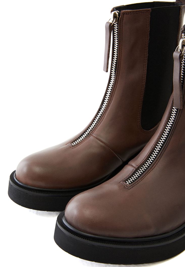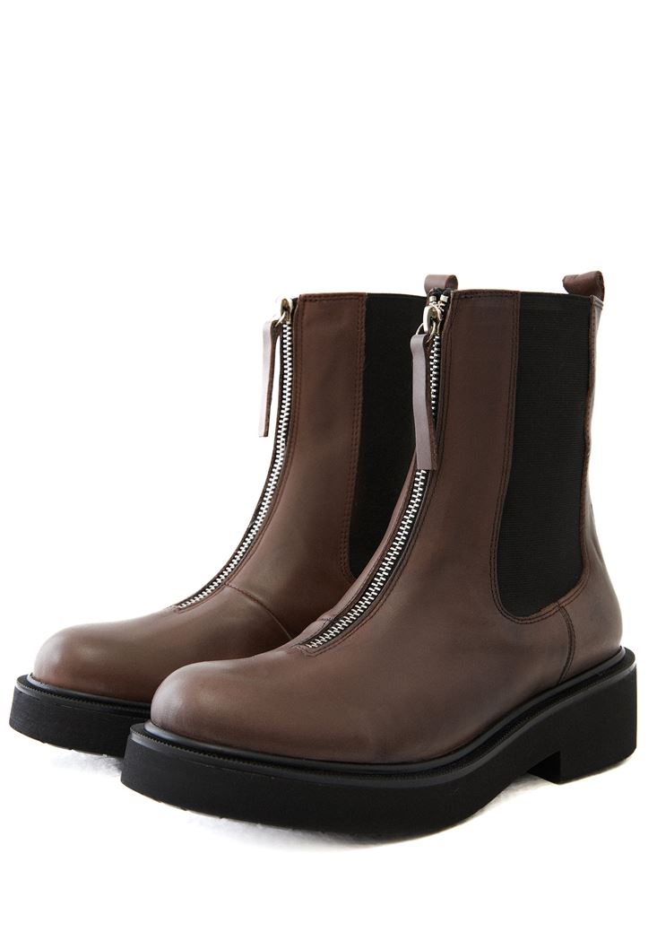 • Bayan Kahverengi Fermuar Detaylı Deri Bot