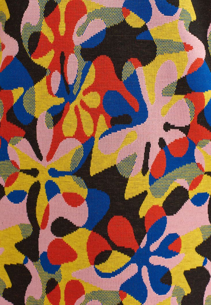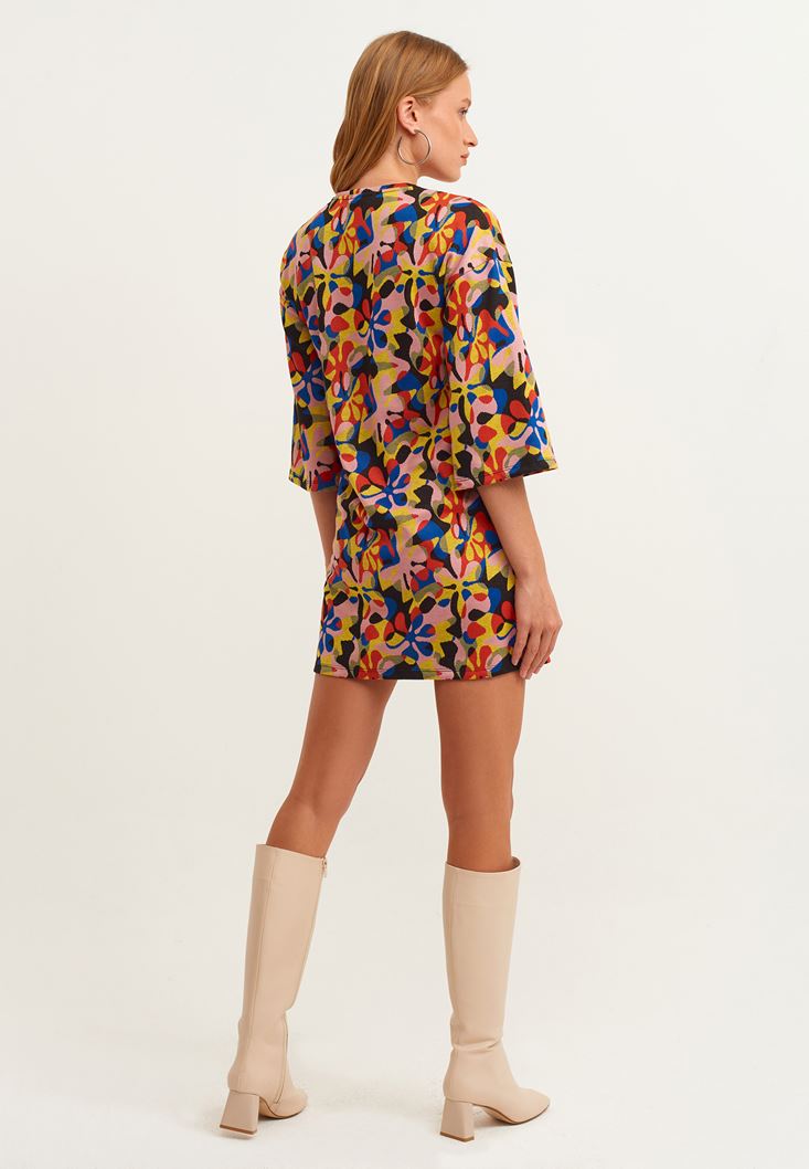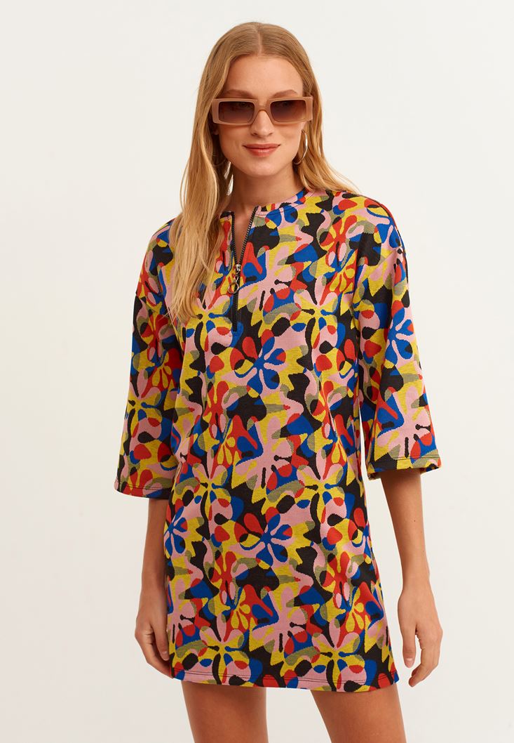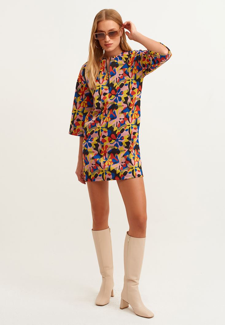 Çok Renkli Fermuar Detaylı Desenli Elbise