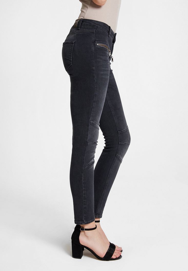 Fermuar Detaylı Düşük Bel Pantolon modeli kesimi, tasarım detayları ve zarif dikişleri ile vücudunuzu sararken aynı zamanda şıklığınızı ön plana çıkarmanıza yardımcı olacak parçalar arasında yer alıyor. Tasarımın ön kısmındaki ceplerde kullanılan metalik renkli fermuarlar bu parçaya hoş bir hareket kazandırıyor. Diz üstü ile diz altı arasında kullanılan dikiş detaylar ve eskitme işlemi de parçanın enerjisini yükseltirken aynı zamanda vücudu sarma etkisini de artırıyor. Pantolon modelinin dokusunda bulunan pamuk lifi sahip olduğu hava geçirgenliği ve nem emme özellikleri sayesinde uzun süreli kullanımlarda konfor sunuyor. Hareket özgürlüğünü şıklık ile başarılı bir şekilde buluşturan OXXO tasarımları arasında yer alan pantolon modeli dikkat çekici ve konforlu bir şıklık elde etmenize yardımcı olacak.