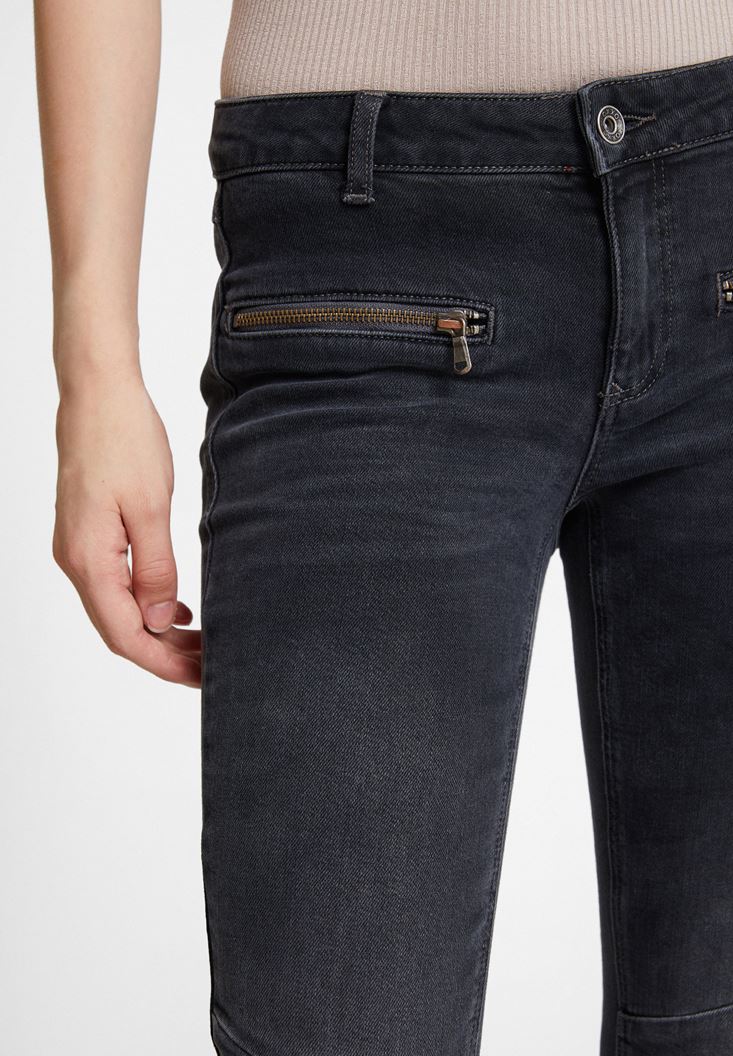 Gri Fermuar Detaylı Düşük Bel Pantolon