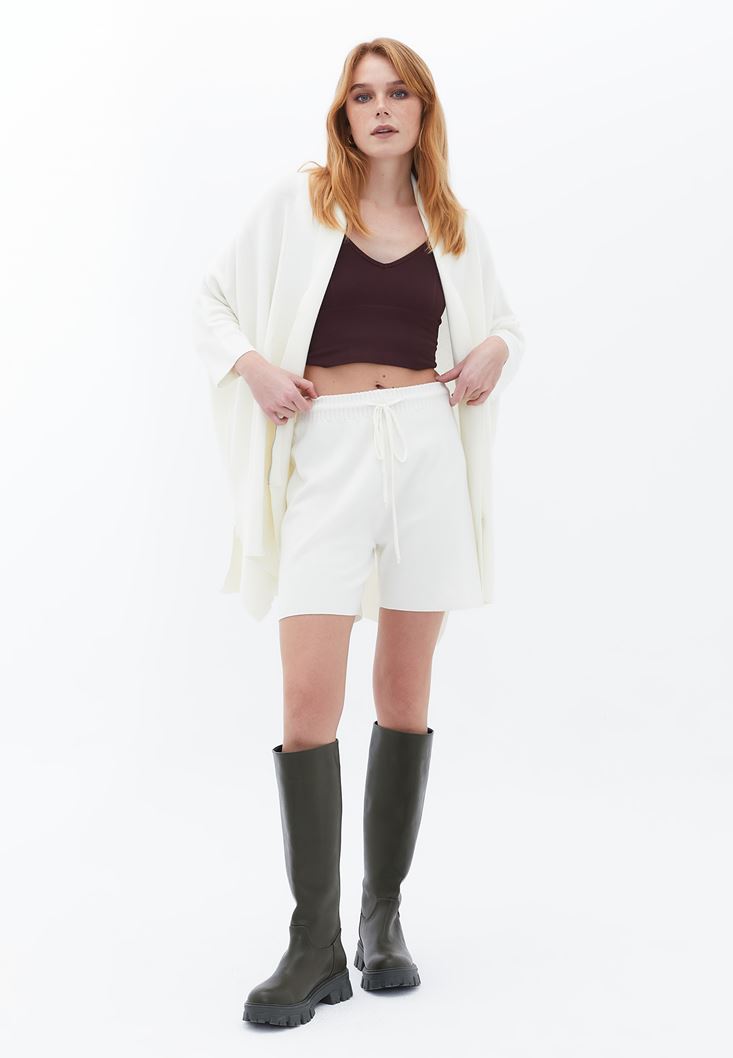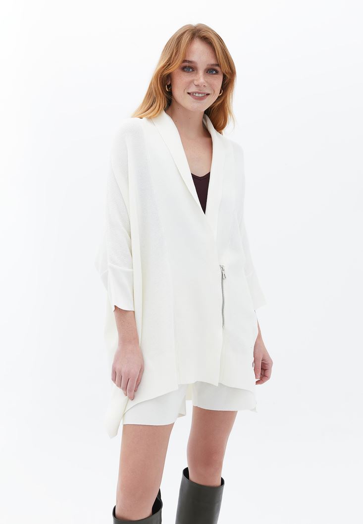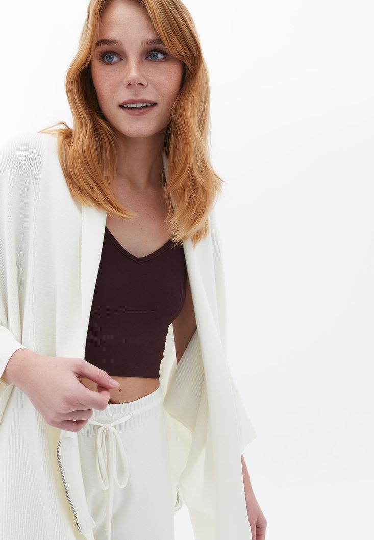 Krem Fermuar Detaylı Hırka