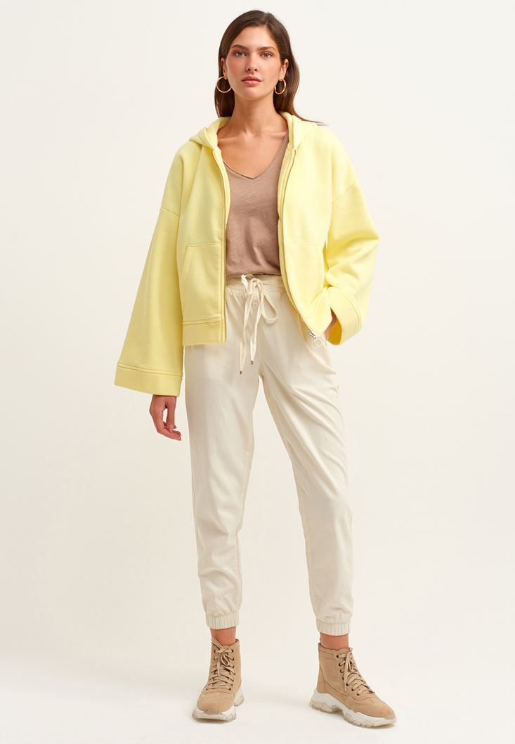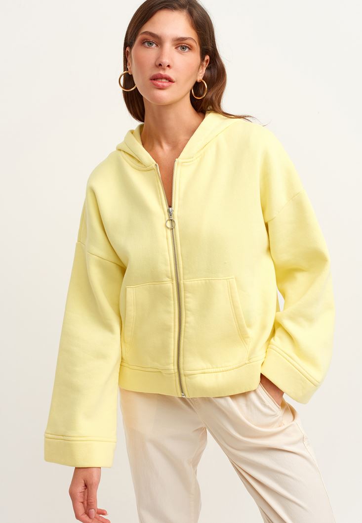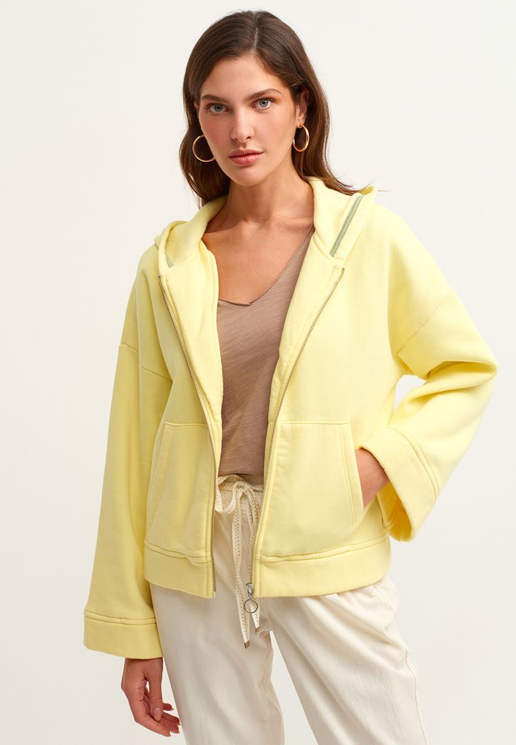 • Bayan Sarı Fermuar Detaylı Kapüşonlu Sweatshirt