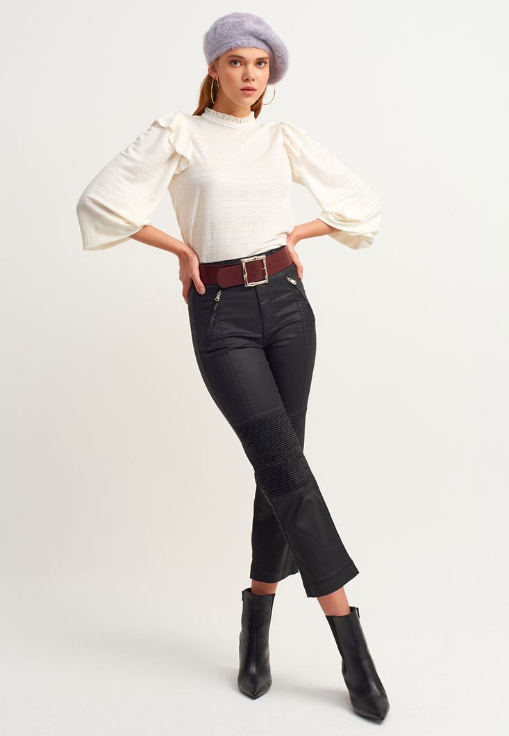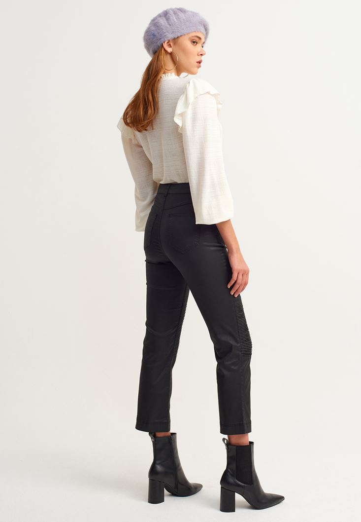 • Bayan Siyah Fermuar Detaylı Slim-Fit Pantolon