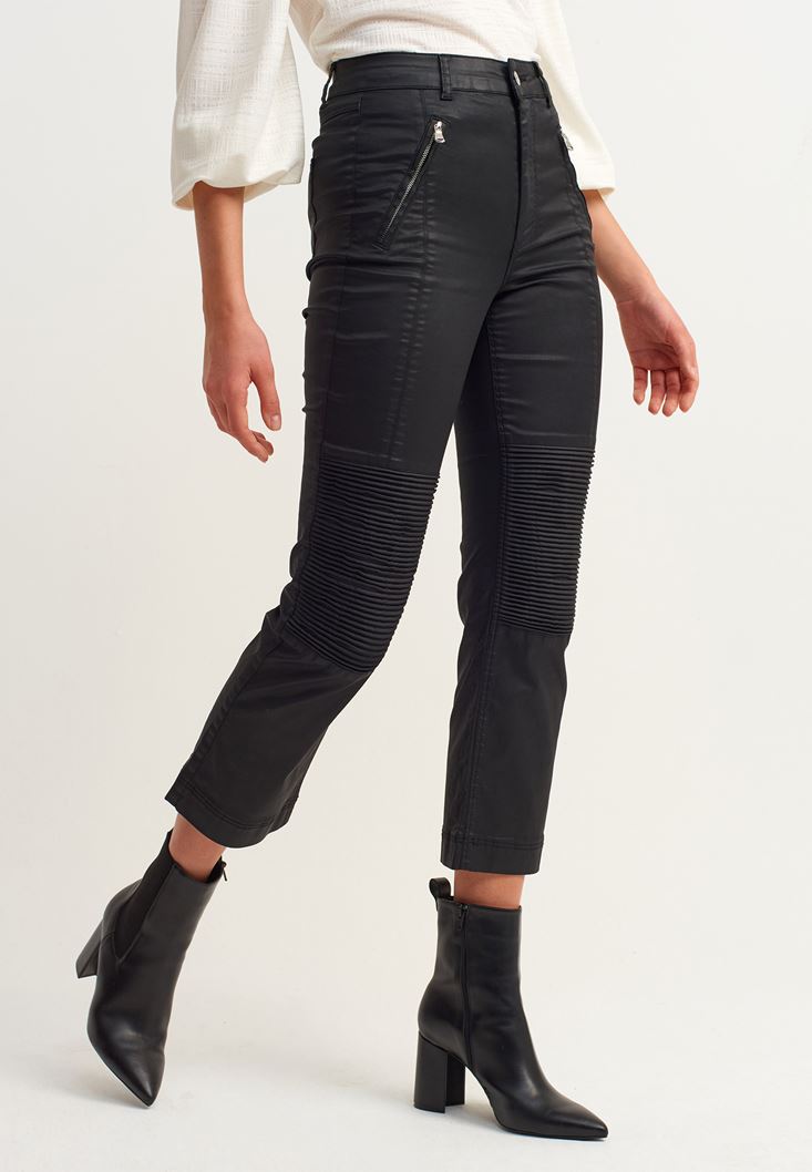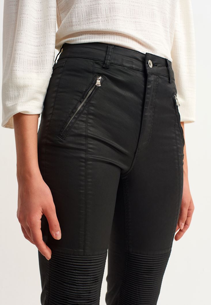 Siyah Fermuar Detaylı Slim-Fit Pantolon