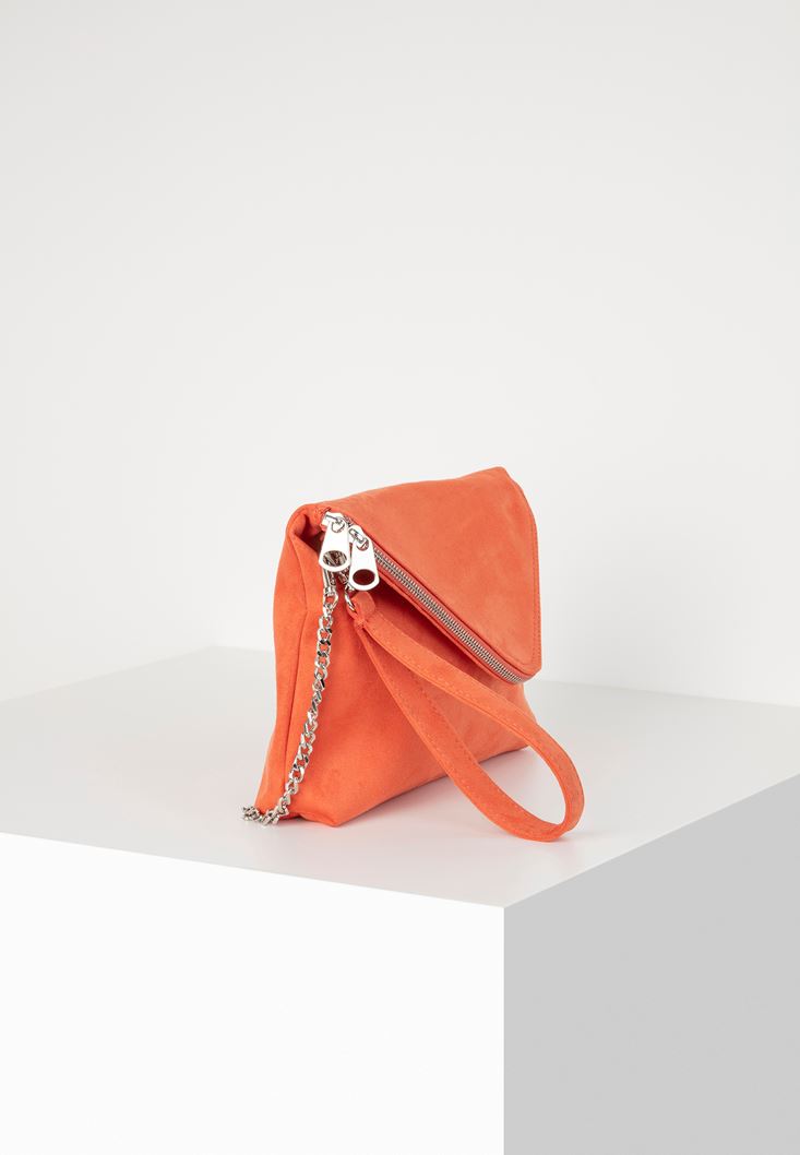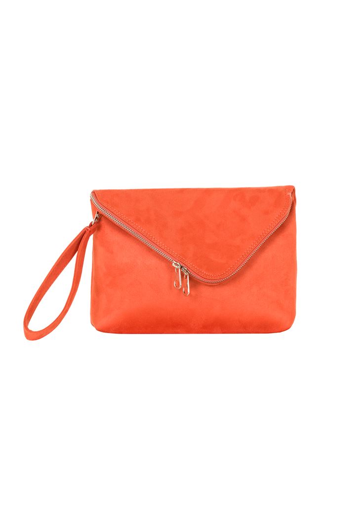 Kırmızı Fermuar Detaylı Süet El Çantası