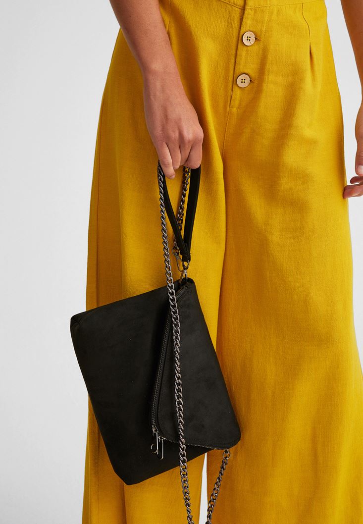 Fermuar Detaylı Süet El Çantası modeli yumuşacık bir dokuya sahip olup katlanabilir tasarımsal özelliği ile şık bir görünüme sahip el çantası. Kullanılmış olan zincir detayı ile farklı bir tarz sunan süet çantayı çok severek kombinleyeceksiniz. Şıklığın vazgeçilmez tamamlayıcıları olan askılı çanta modeli kombinlerinizin olmazsa olmazları arasında. Yumuşacık dokusunun yanında, hem kullanılmış olan zincir detayından dolayı omuzdan askılı çanta hem de el çantası olarak iki farklı şekilde kullanılabilen kadın çantasını çok seveceksiniz.