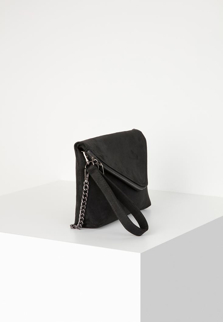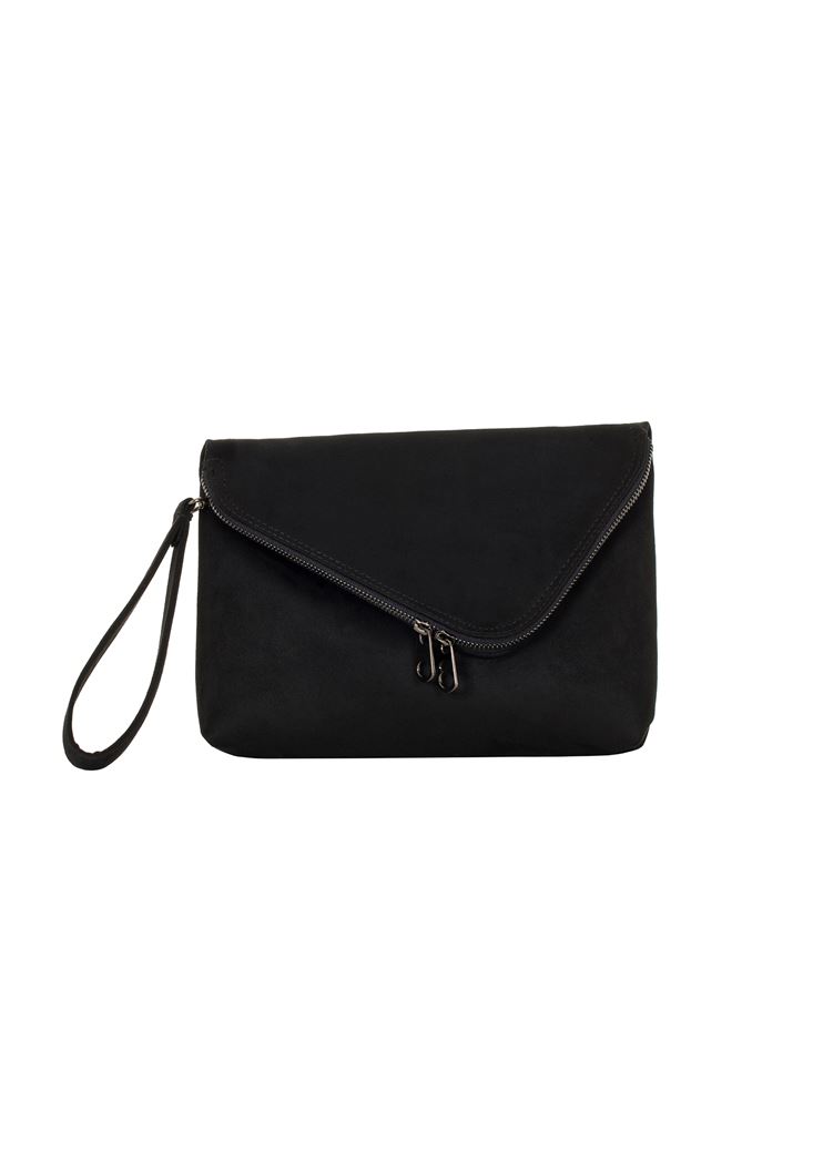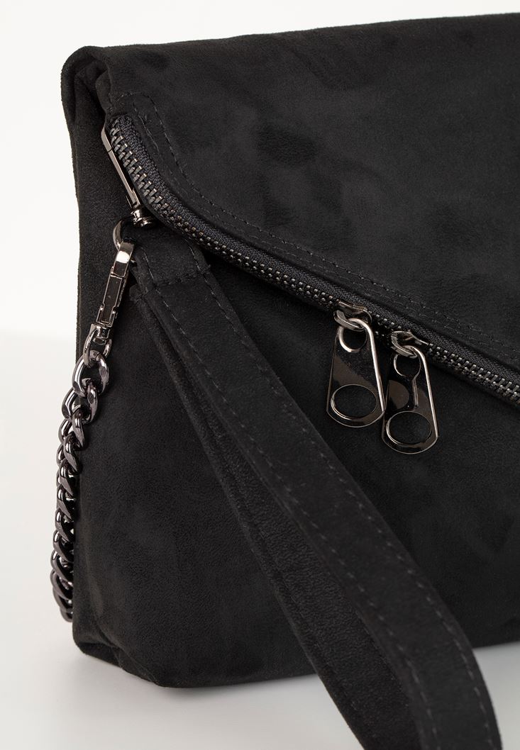 • Bayan Siyah Fermuar Detaylı Süet El Çantası
