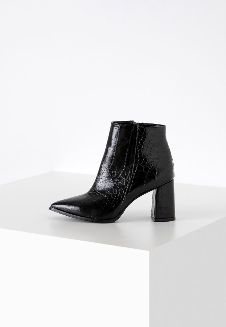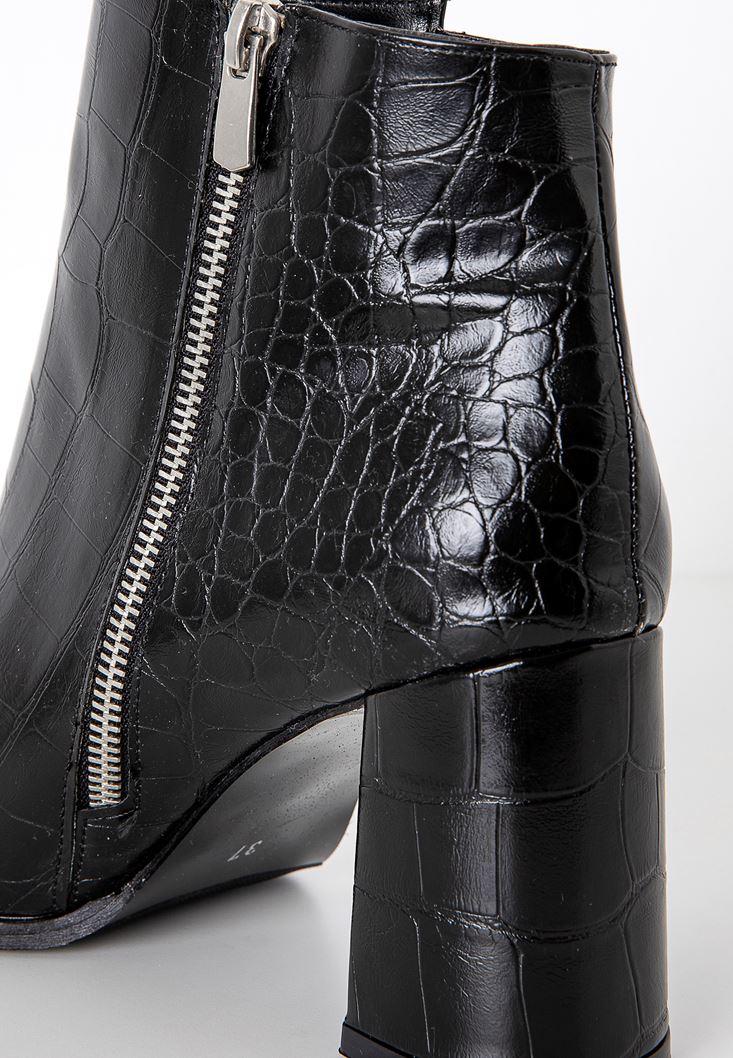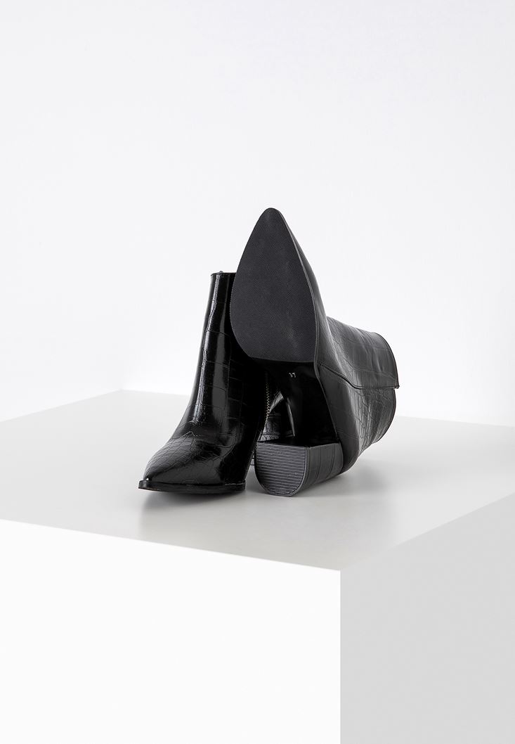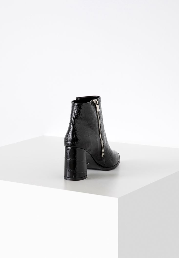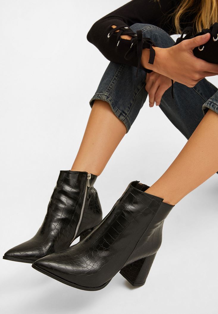 Siyah Fermuar Detaylı Topuklu Bot