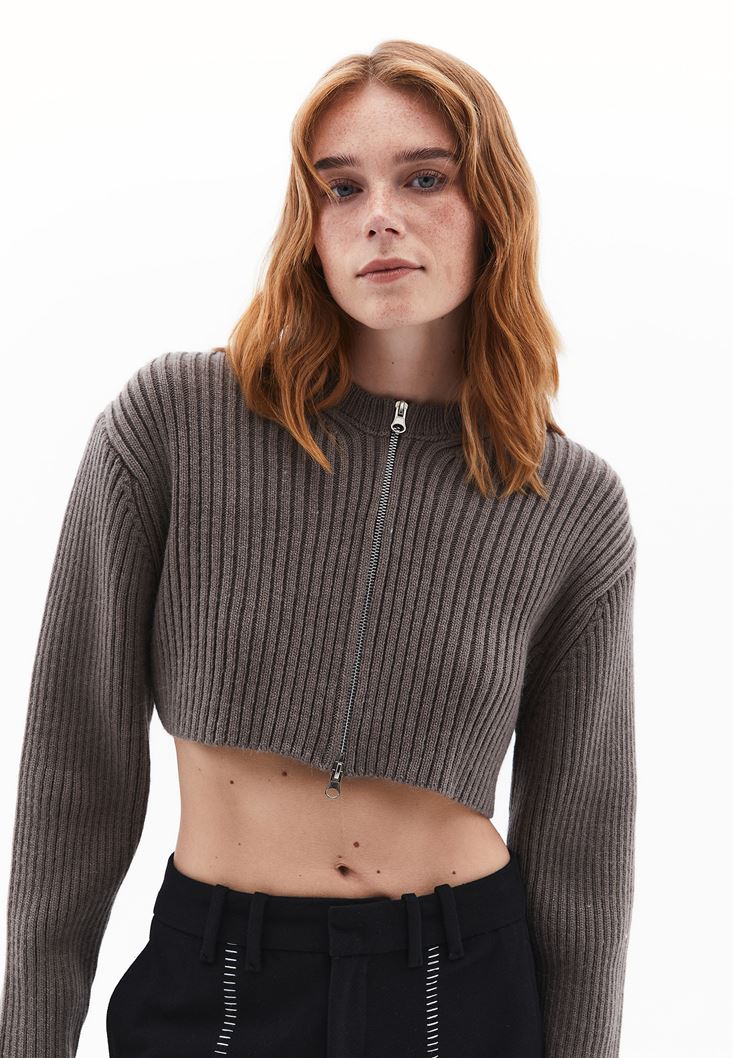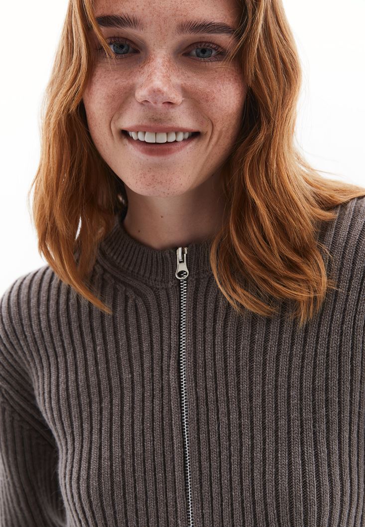 • Bayan Kahverengi Fermuar Detaylı Triko Hırka