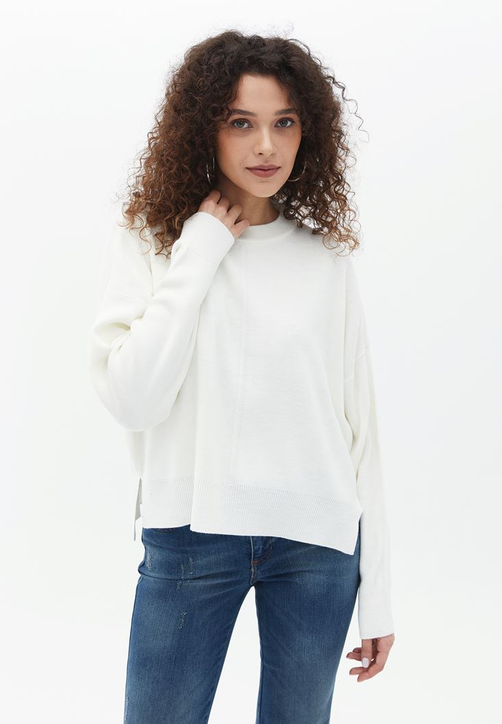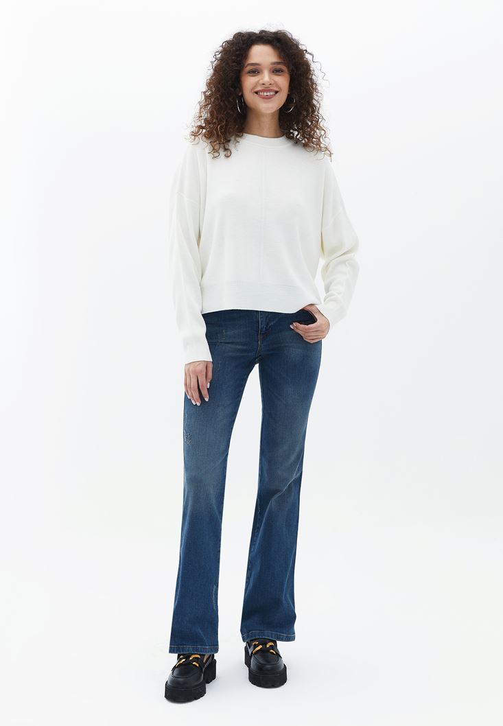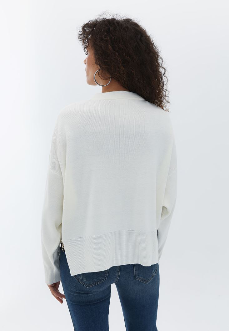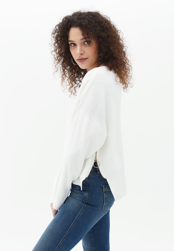 • Bayan Krem Fermuar Detaylı Triko Kazak