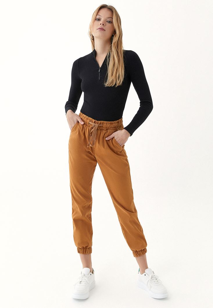 Pamuk içerikli fitilli doku, bedeni saran esnek form, yakası fermuar kapamalı, yüksek yaka tasarım, uzun kollu, standart boy.