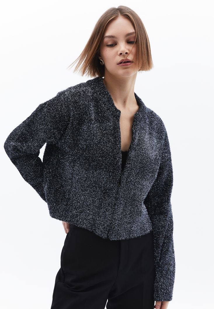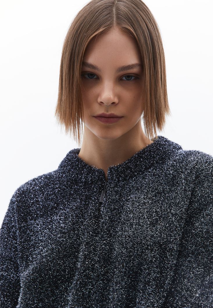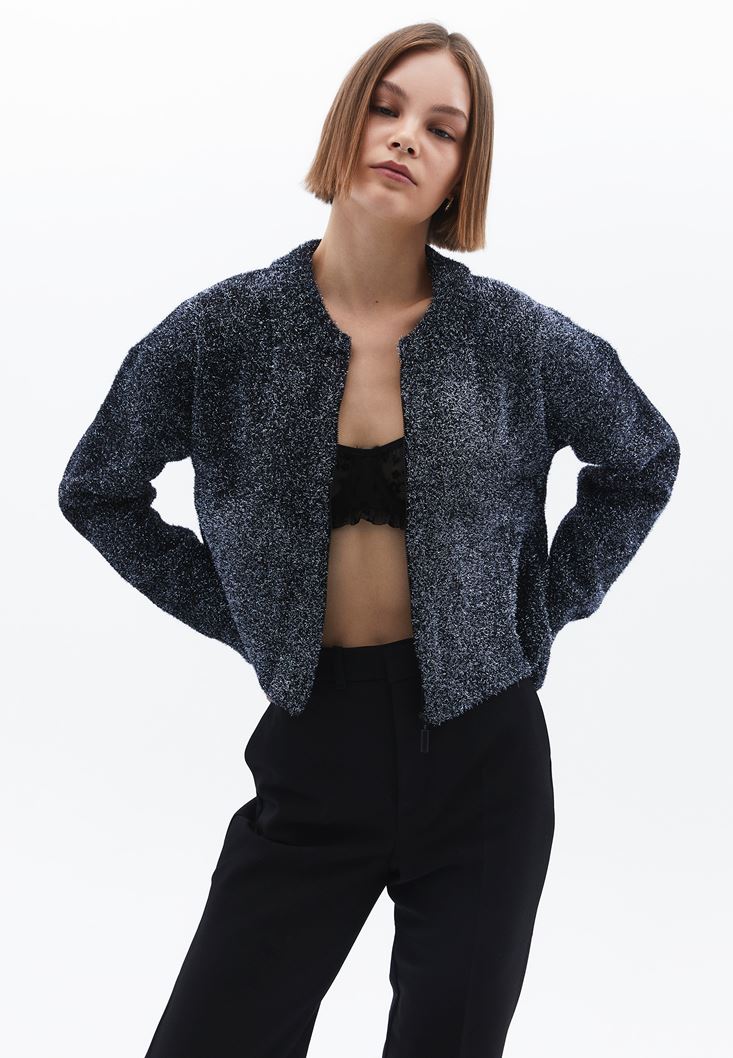 • Bayan Gümüş Fermuarlı Bomber Hırka