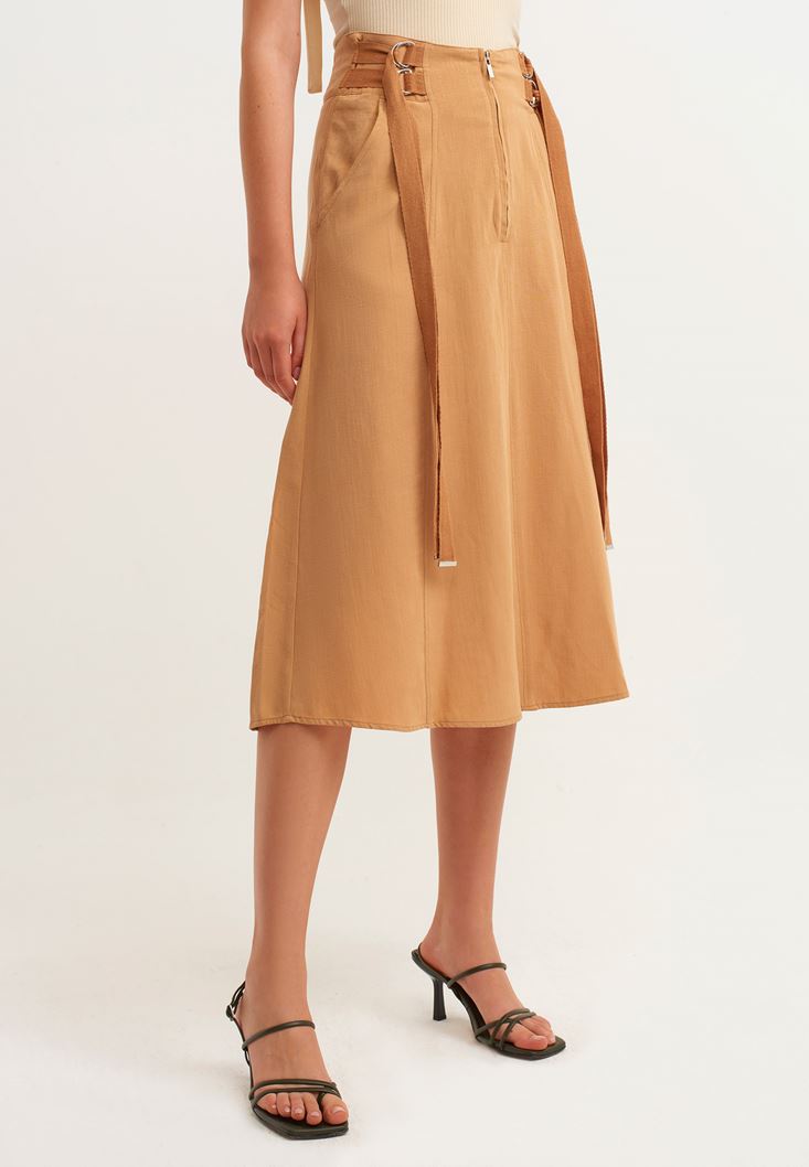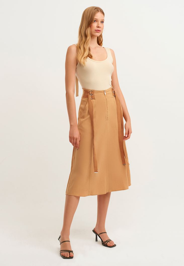 Bej Fermuarlı Midi Etek ( TENCEL™ )