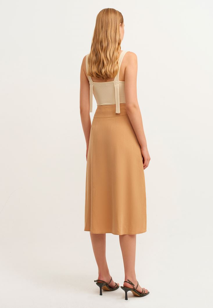 • Bayan Bej Fermuarlı Midi Etek ( TENCEL™ )