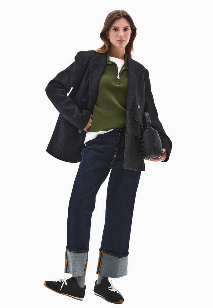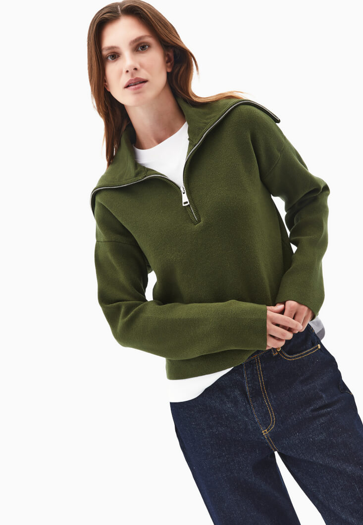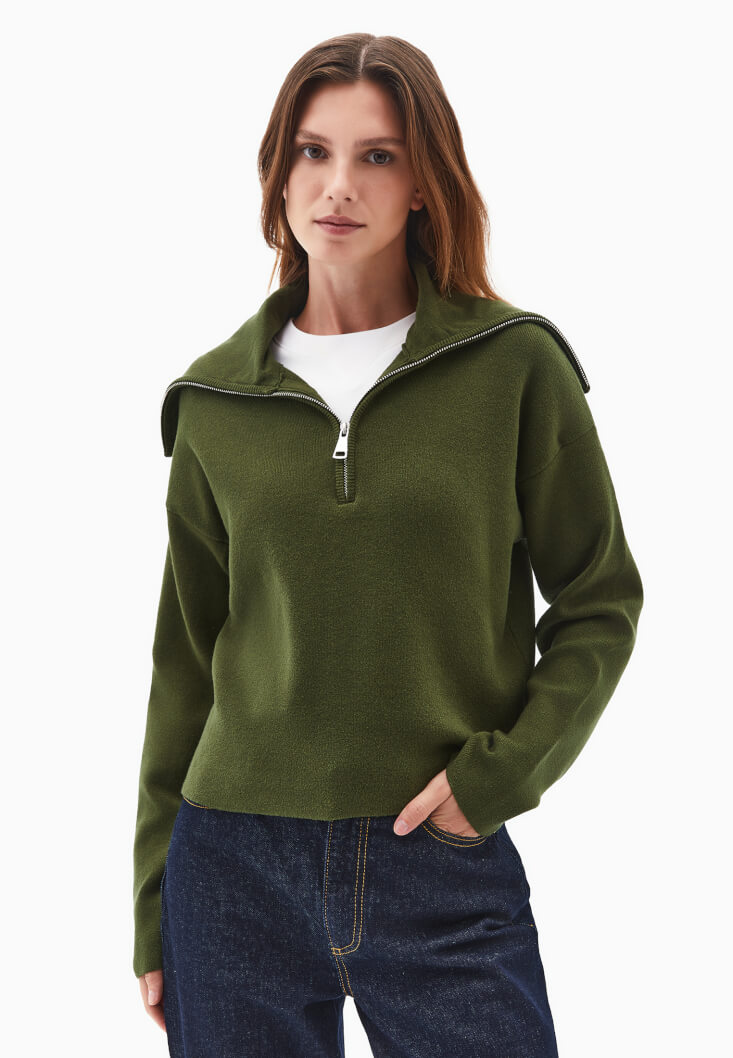 • Bayan Yeşil Fermuarlı Polo Yaka Kazak