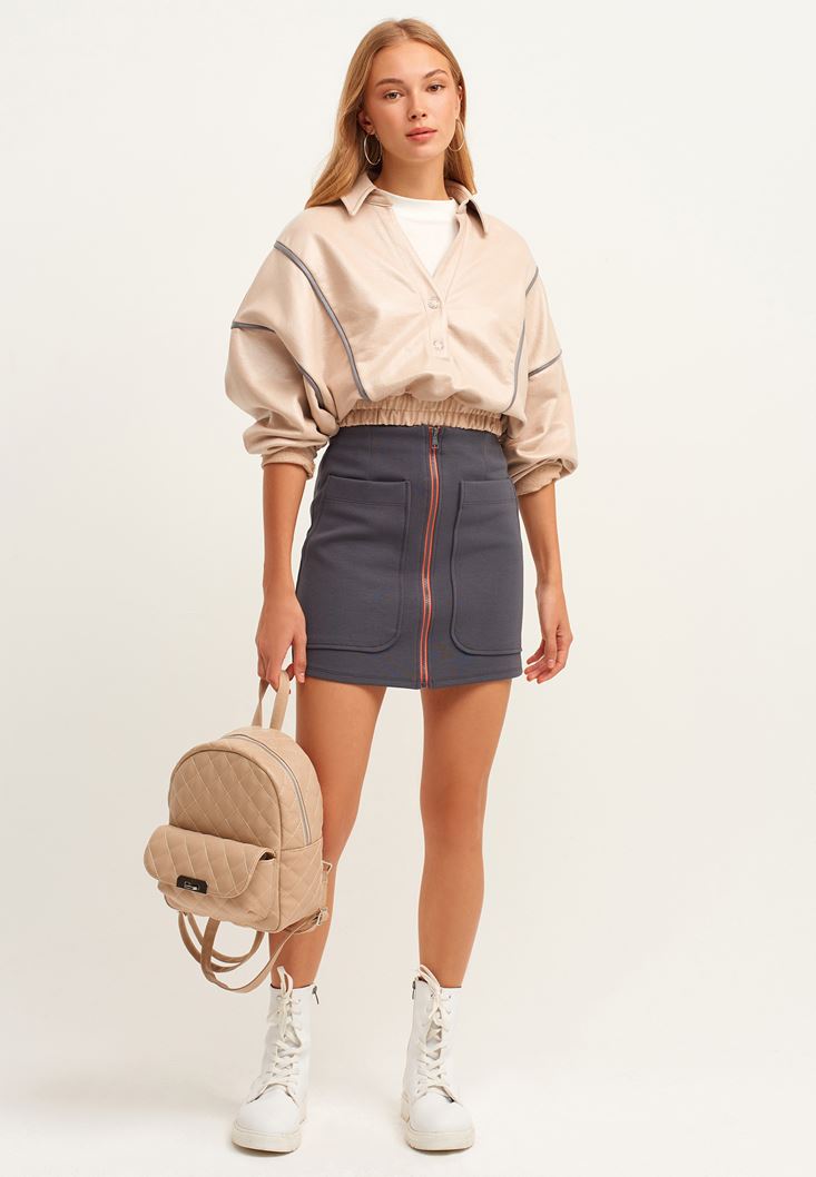 Pamuk karışımlı kusursuz dokusu ve renkli fermuar ayrıntısı ile karşına çıkan mini etek favorin olabilir! Büyük cepli görünümü ve rahat kalıbı ile büyüleyen bu parçayı crop sweatlerle ve sneaker botlarla buluşturarak etkileyici kombinler yapabilirsin... Ani gelişen organizasyonları kaçırmamak için mini etek modeli mutlaka dolabında olmalı, o seni bekliyor... :)